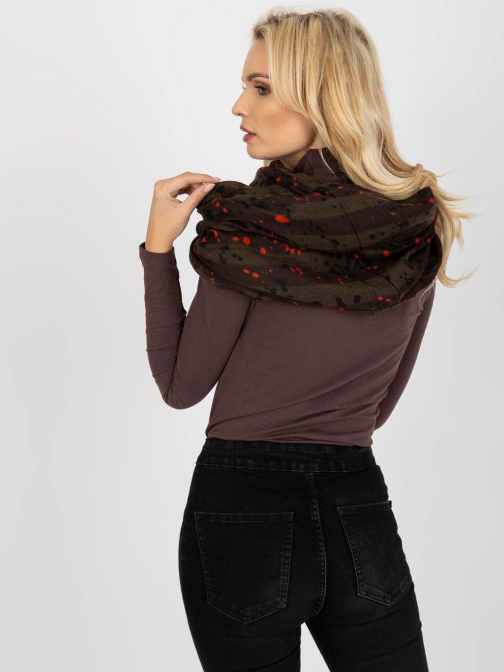 Šatka s pruhmi a bodkami - khaki