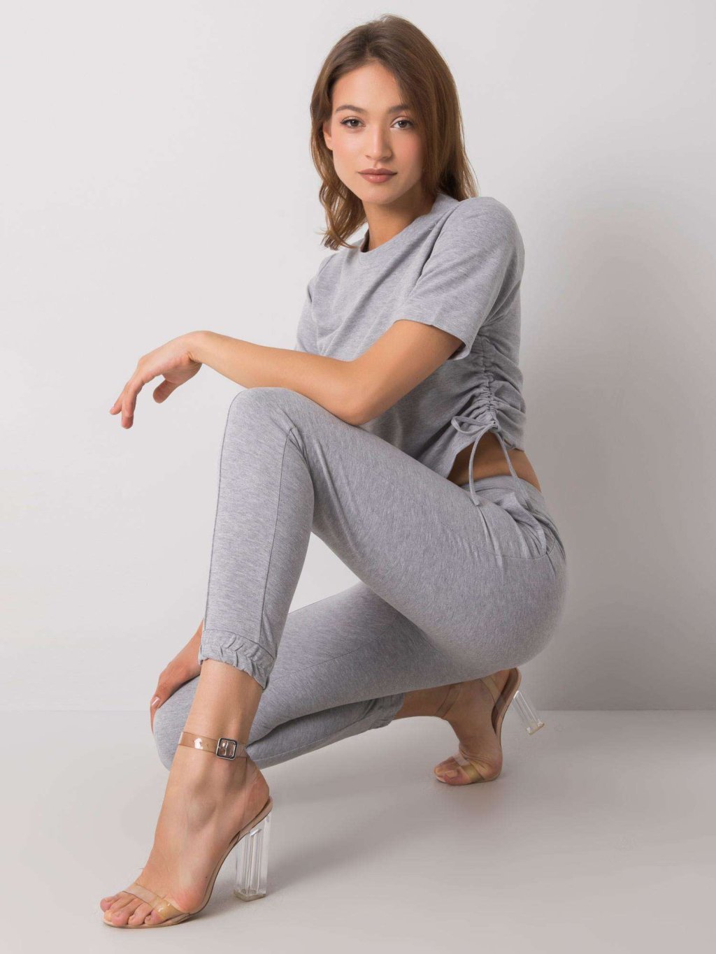 Sivá dámska tepláková súprava trička a teplákov