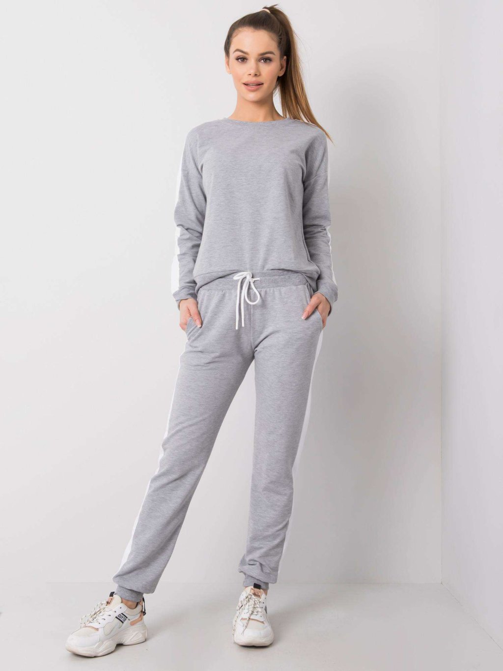 Šedá dámska tepláková súprava s pruhom