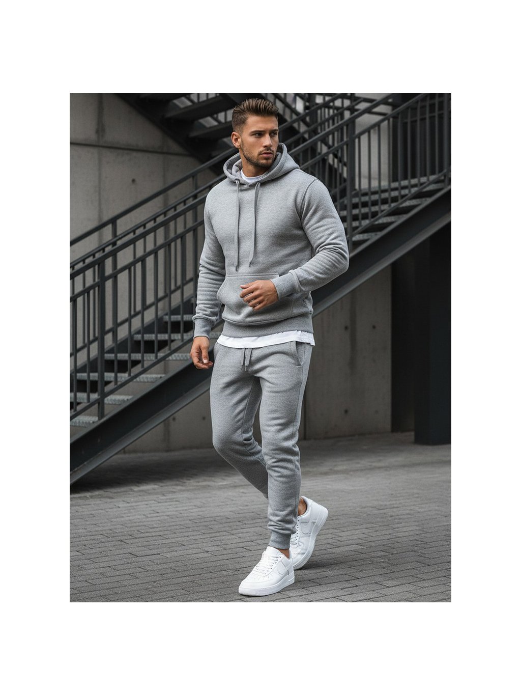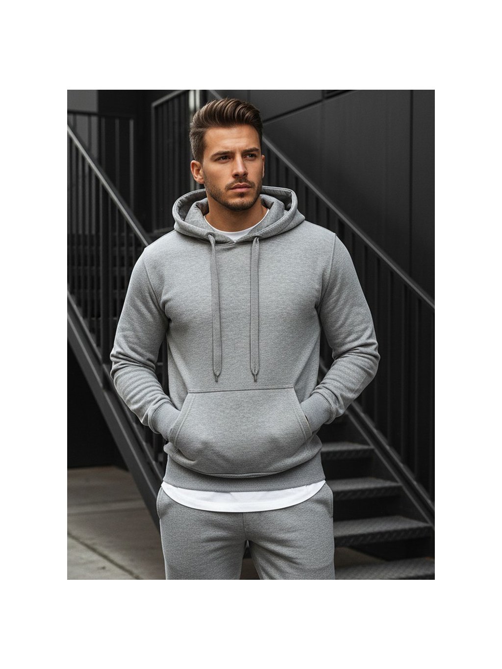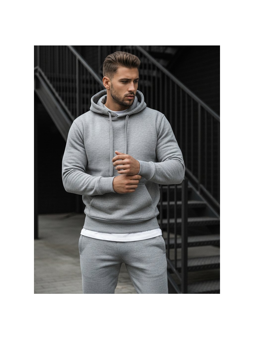 Šedá pánska mikina s kapucňou