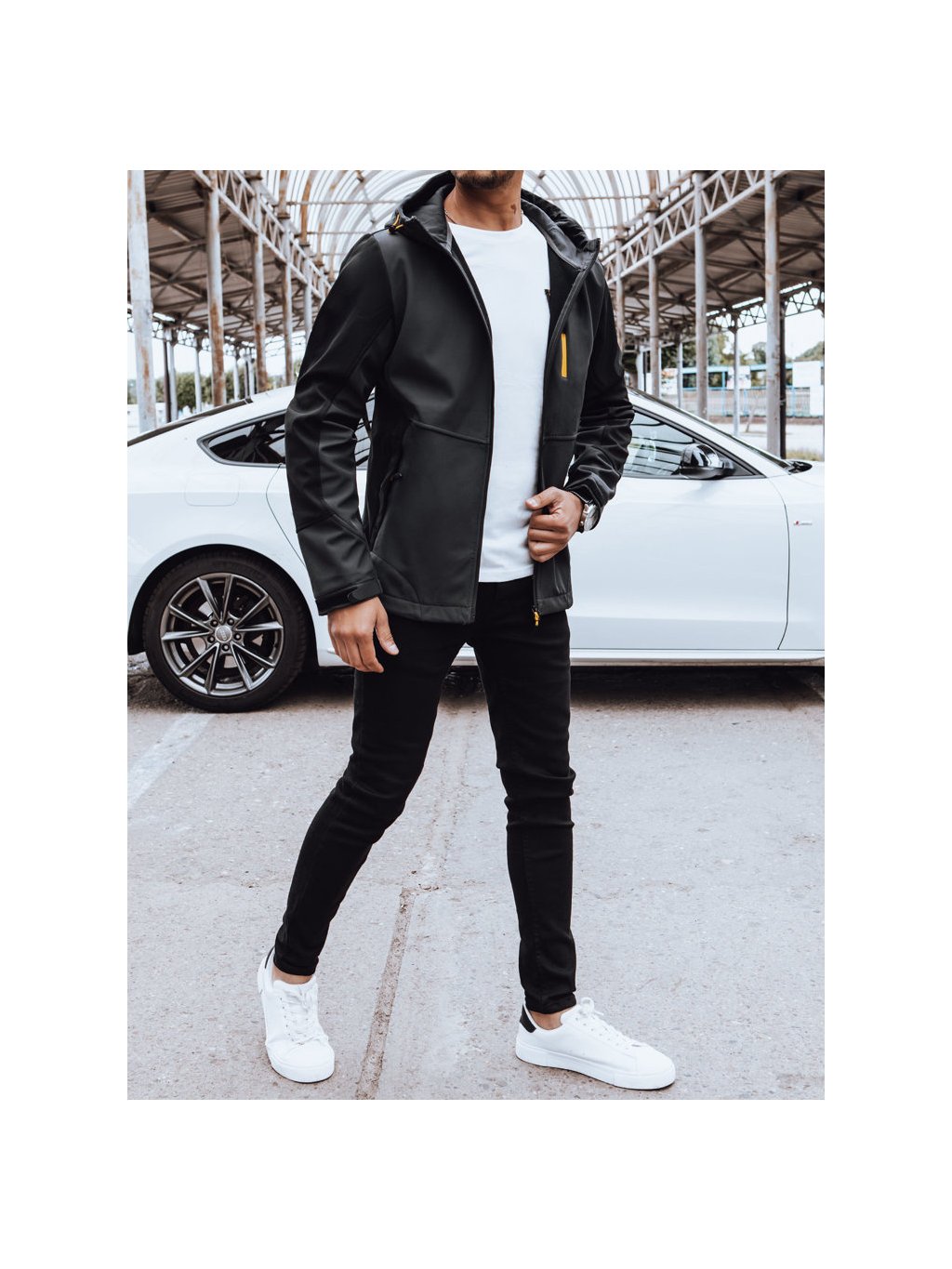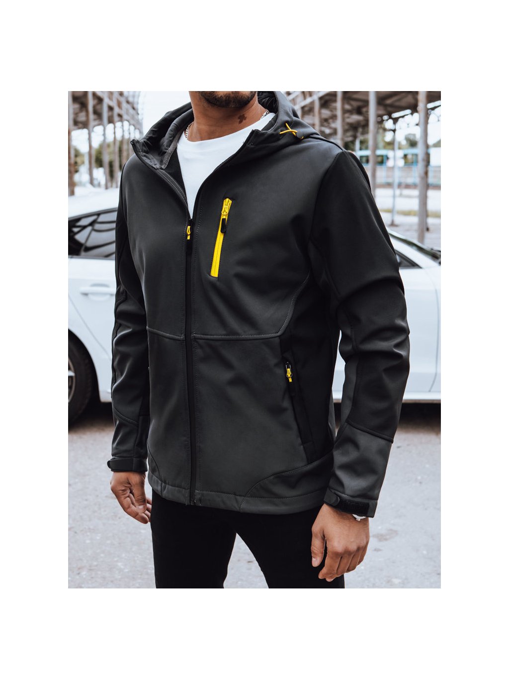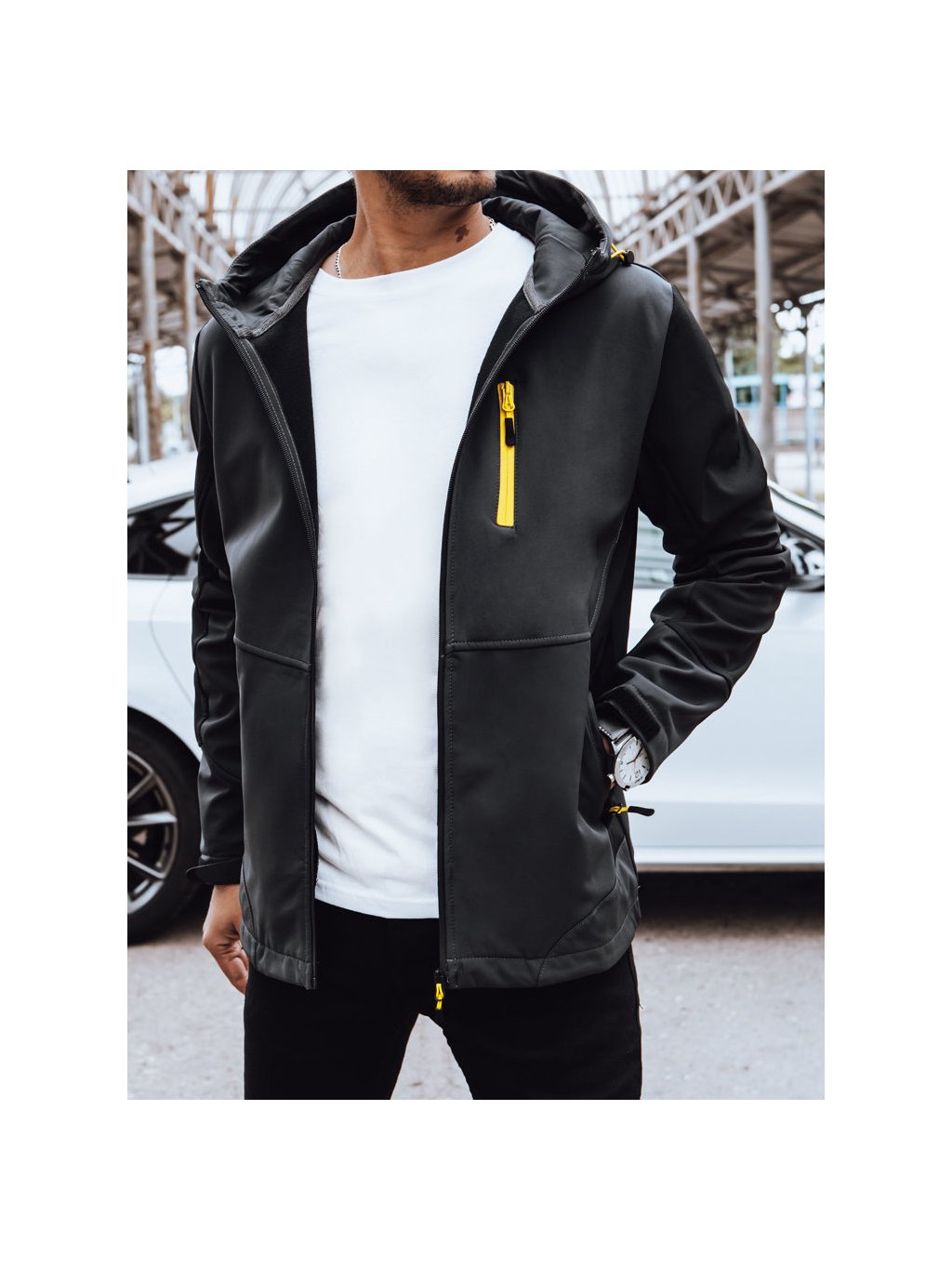 Pánska softshellová bunda s kapucňou.