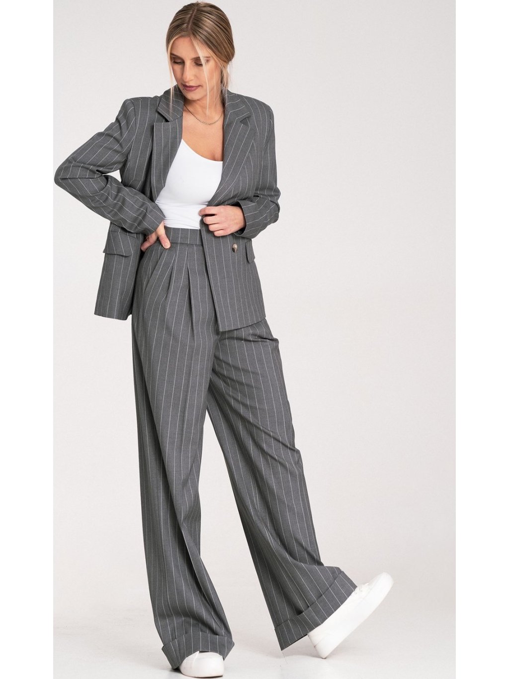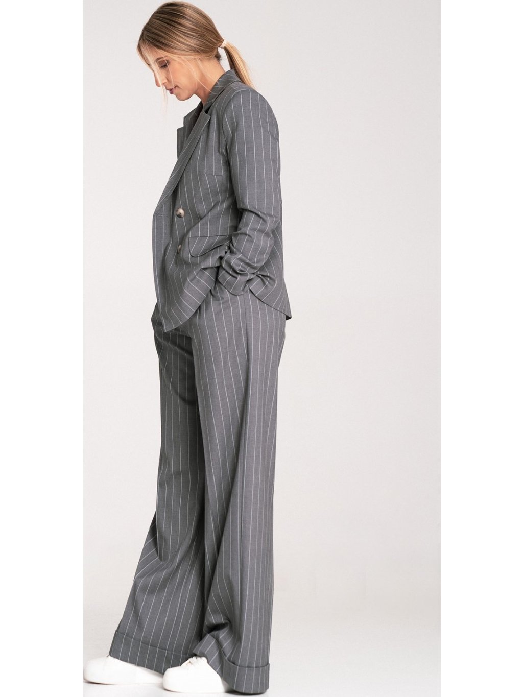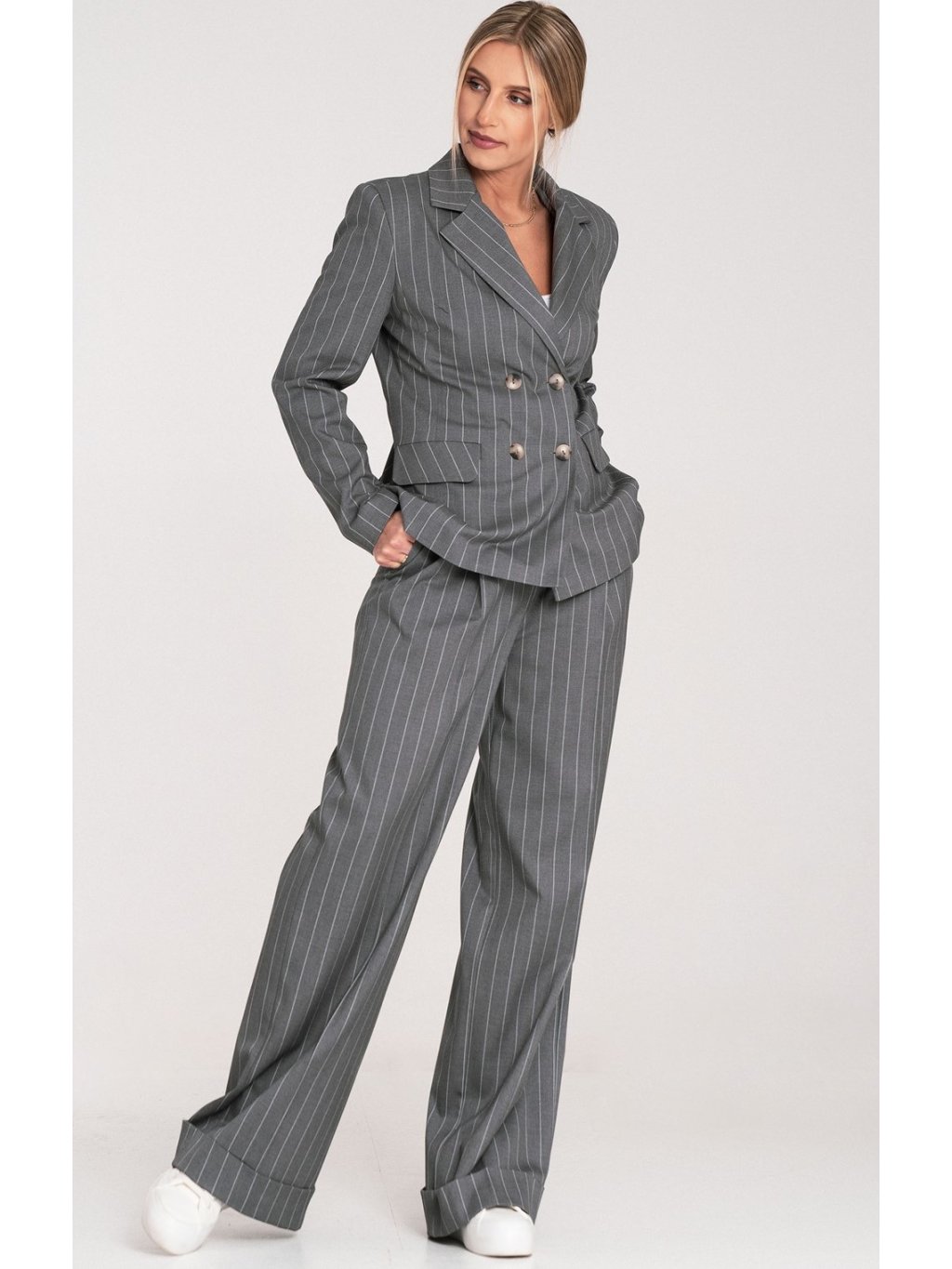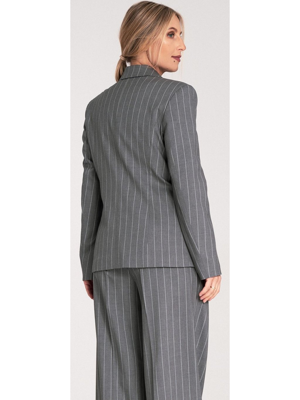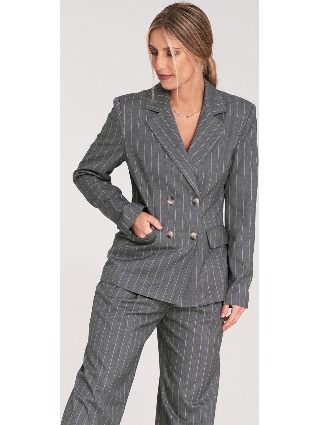 Sivé dámske dvojradové pruhované sako s pruhmi
