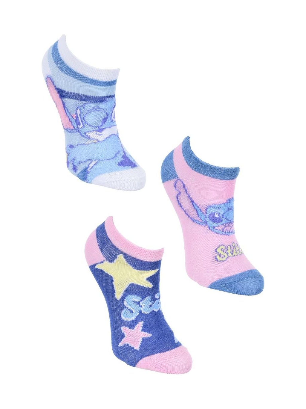 Set 3 párov dievčenských členkových ponožiek Lilo a Stitch - modrá/ružová