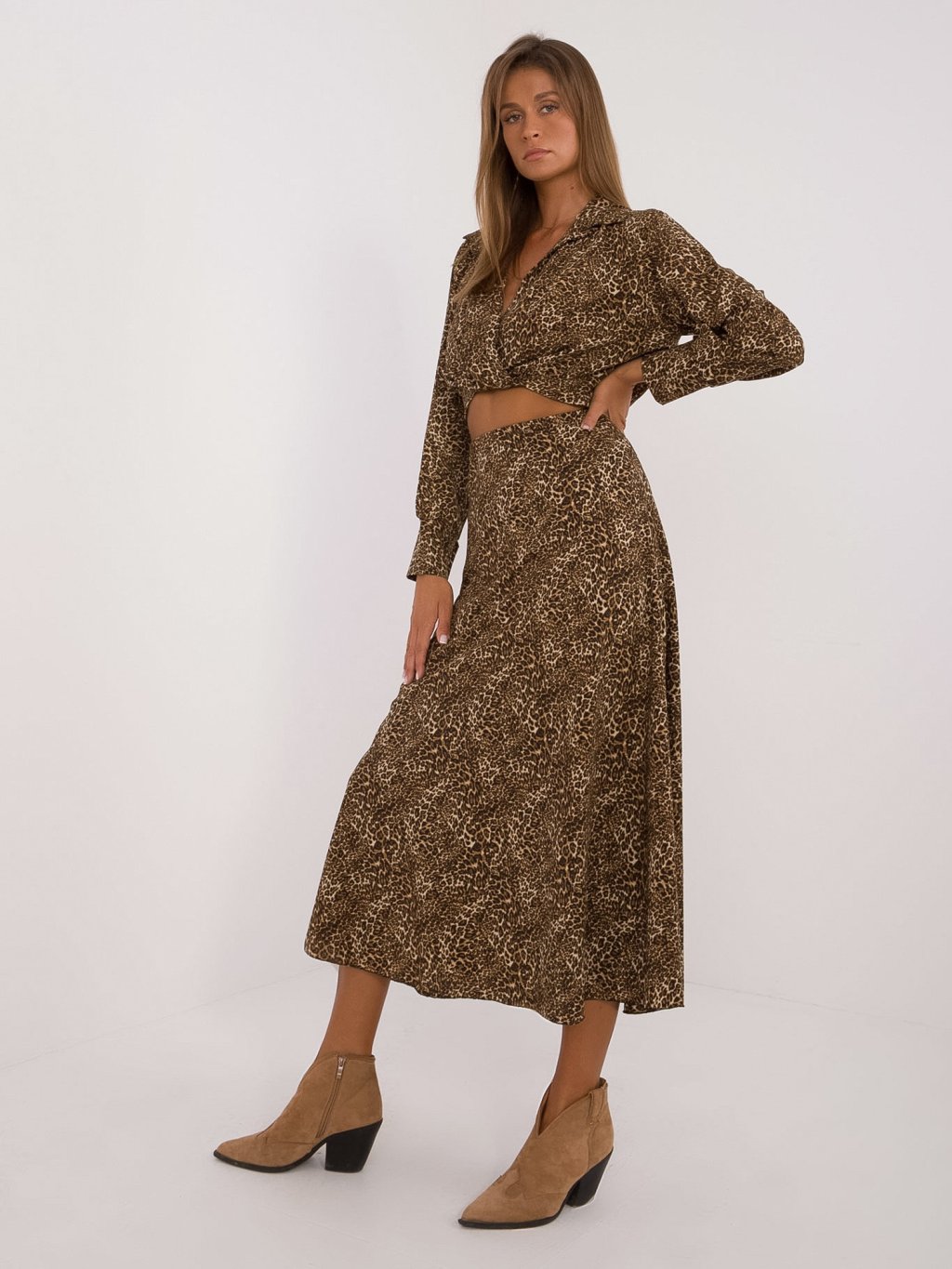 Set blúzky a sukne s leopardím vzorom