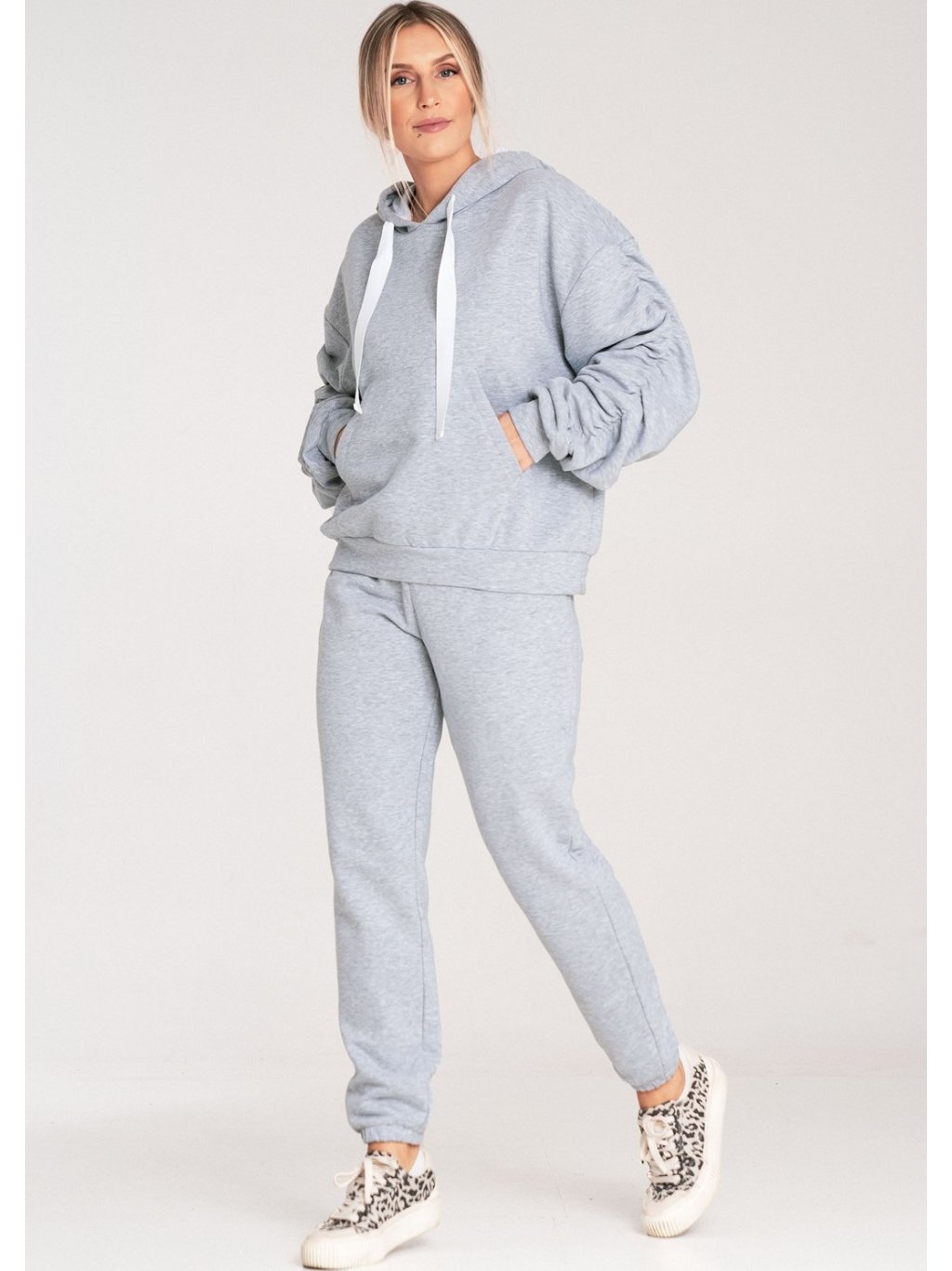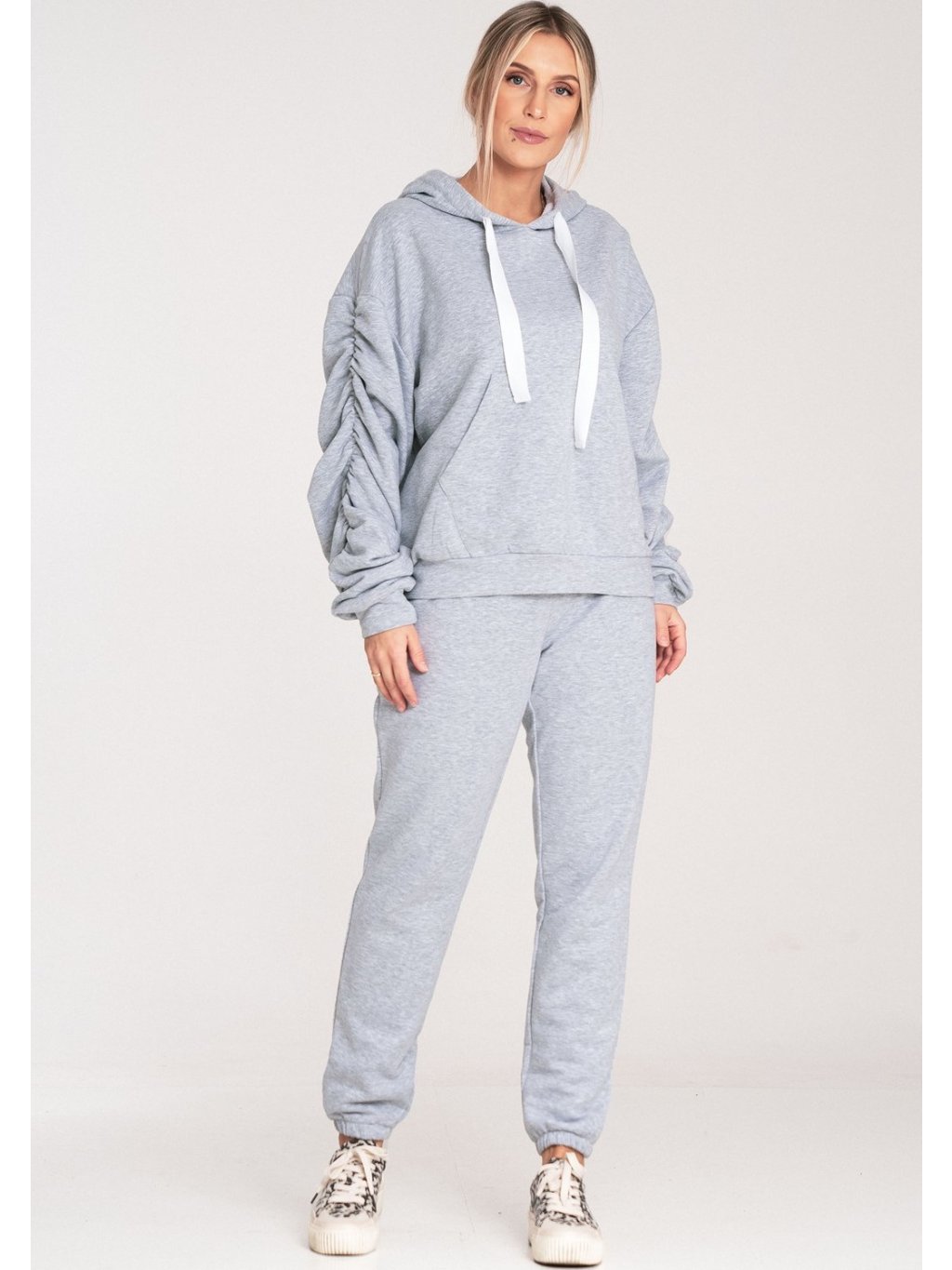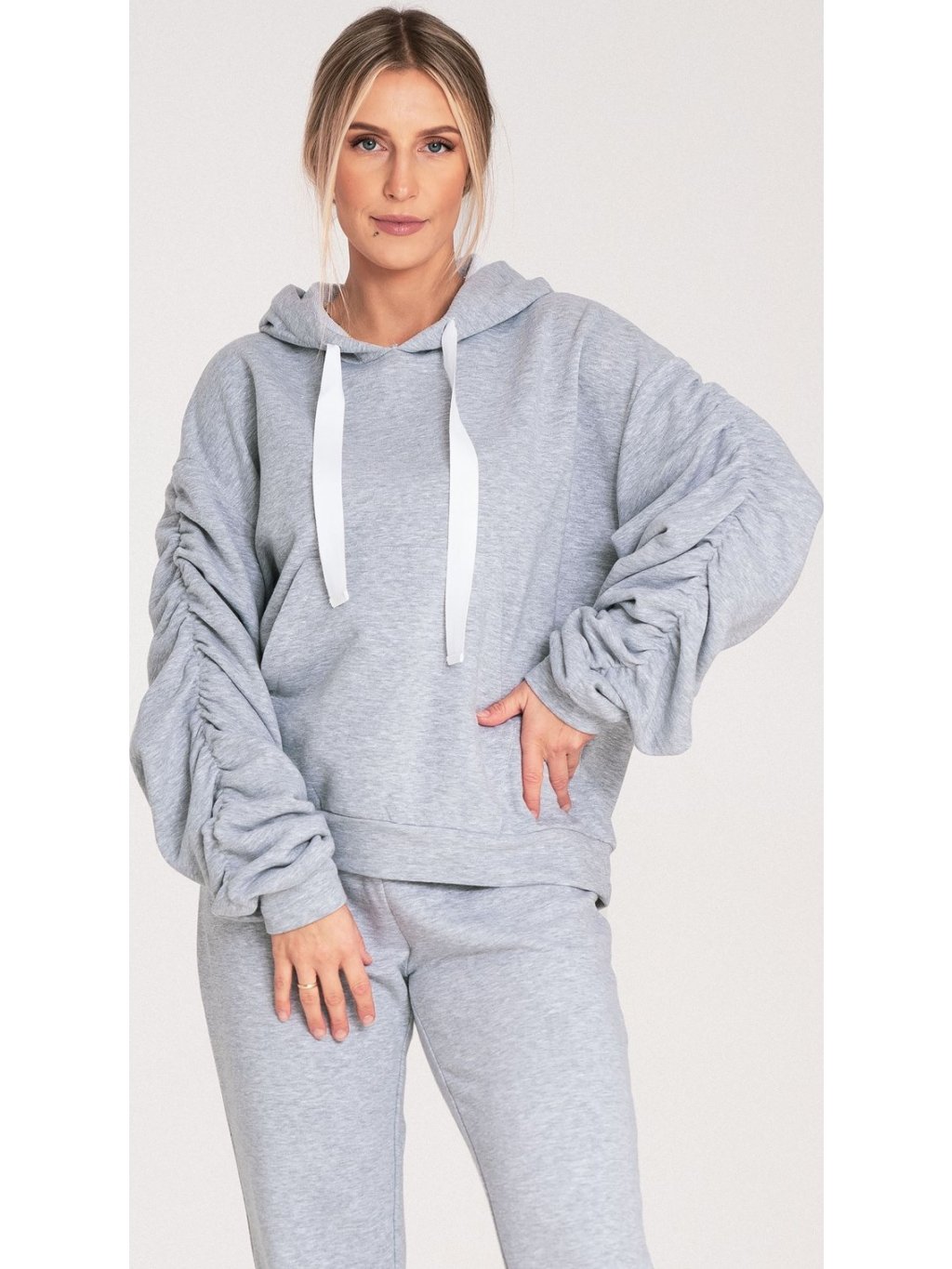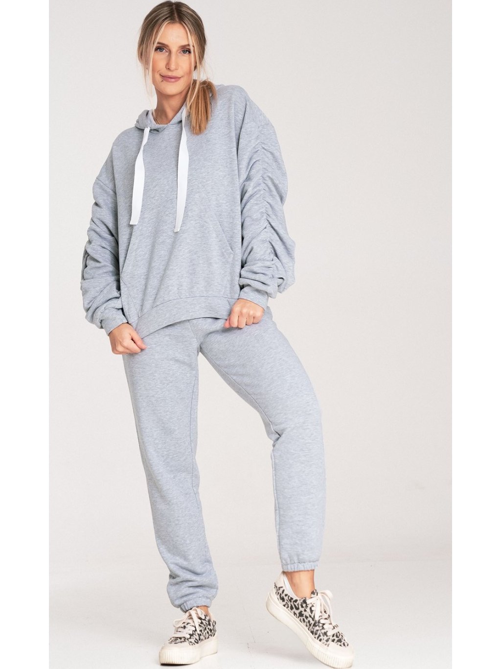 Sivá dámska bavlnená mikina s kapucňou