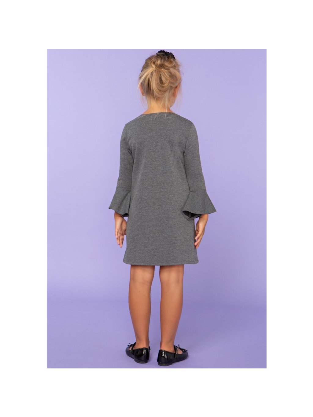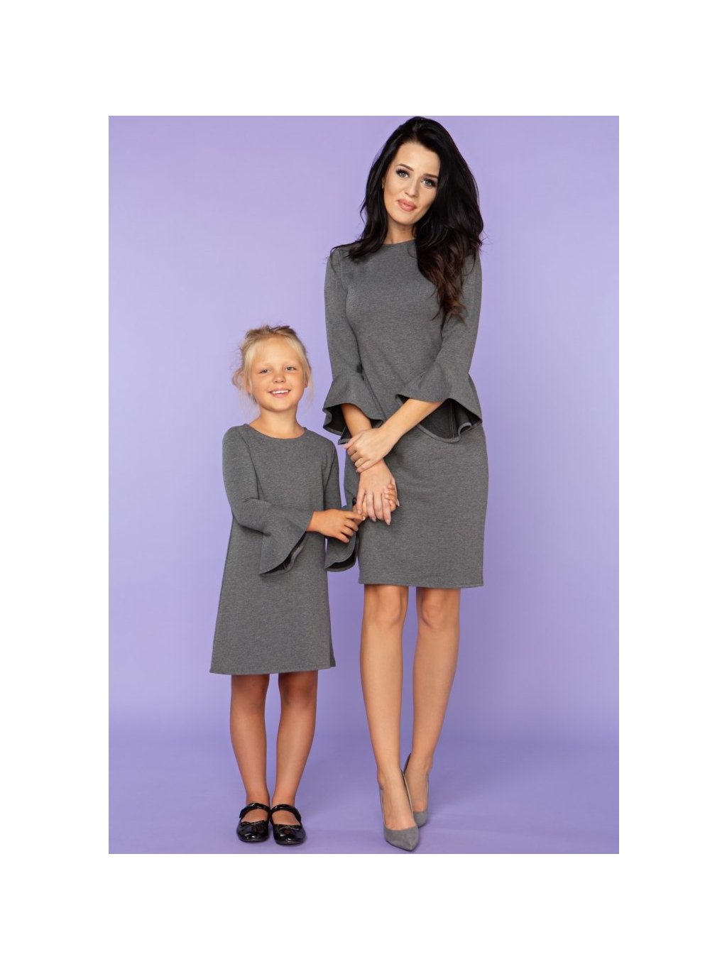 Sivé dievčenské šaty mama a dcéra s efektným volánom na rukáve