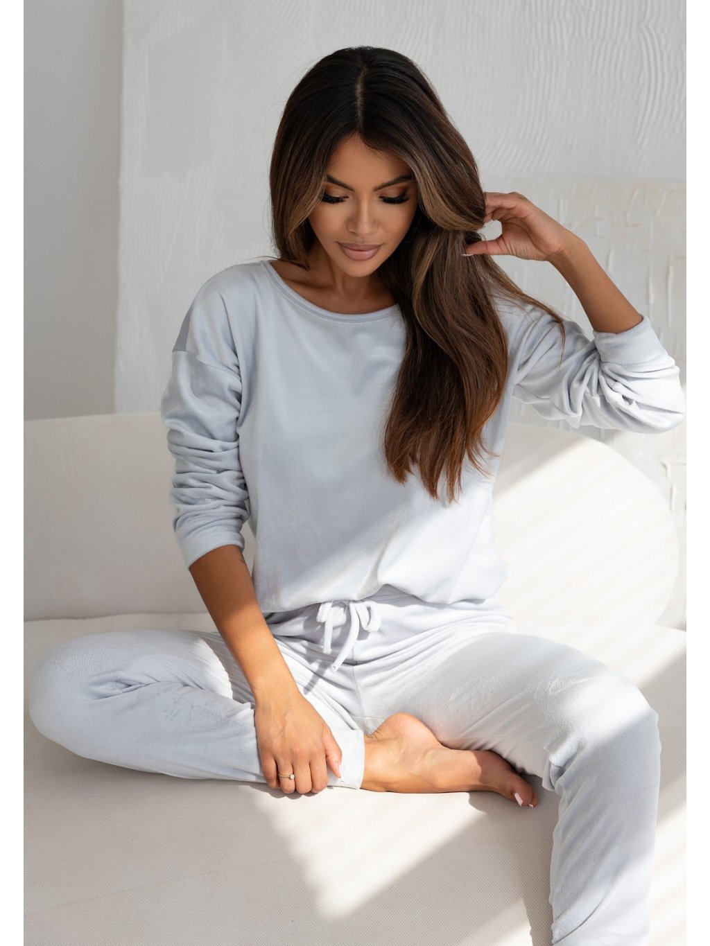 Sivé dlhé pyžamo Sensis Silver Angora Soft
