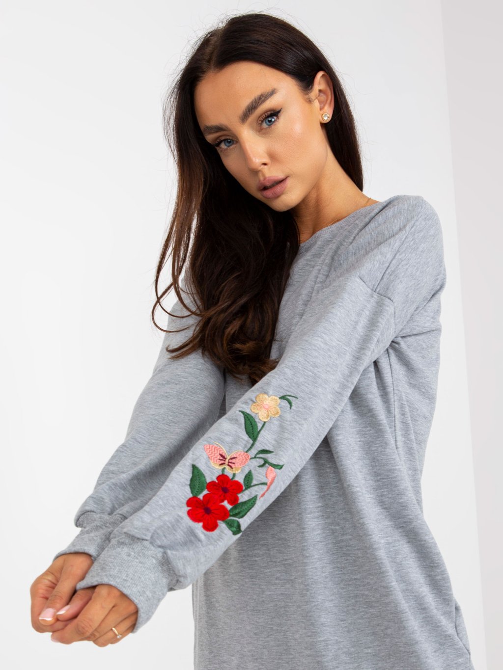 Sivé mikinové šaty s výšivkou