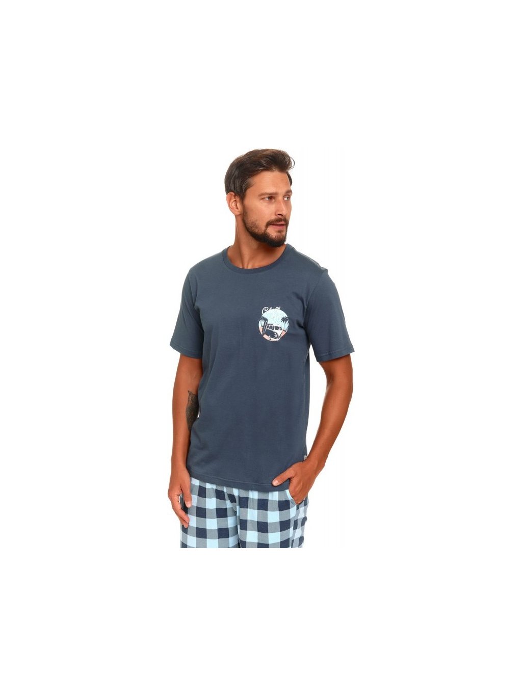 Sivé pánske krátke pyžamo s kockovanými šortkami