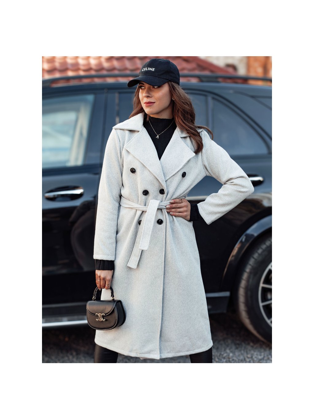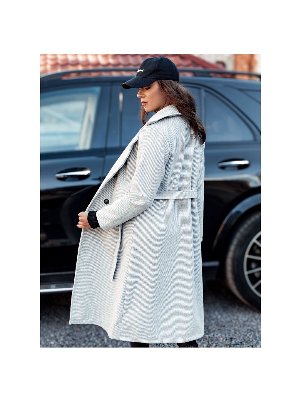 Sivý dámsky dlhý oversize kabát na zaväzovanie CASHMELY