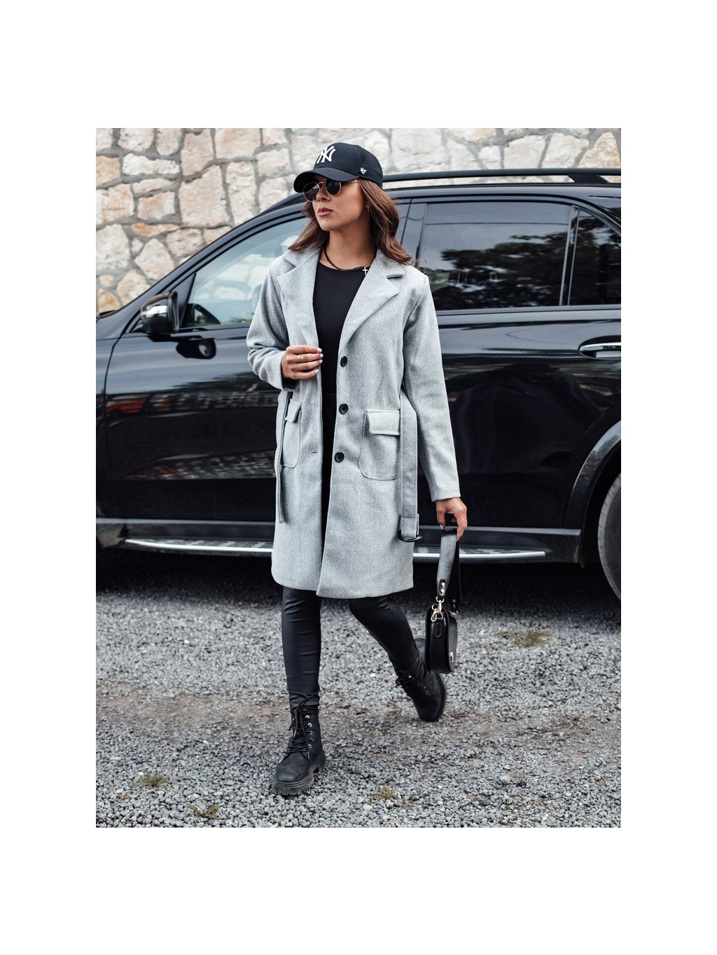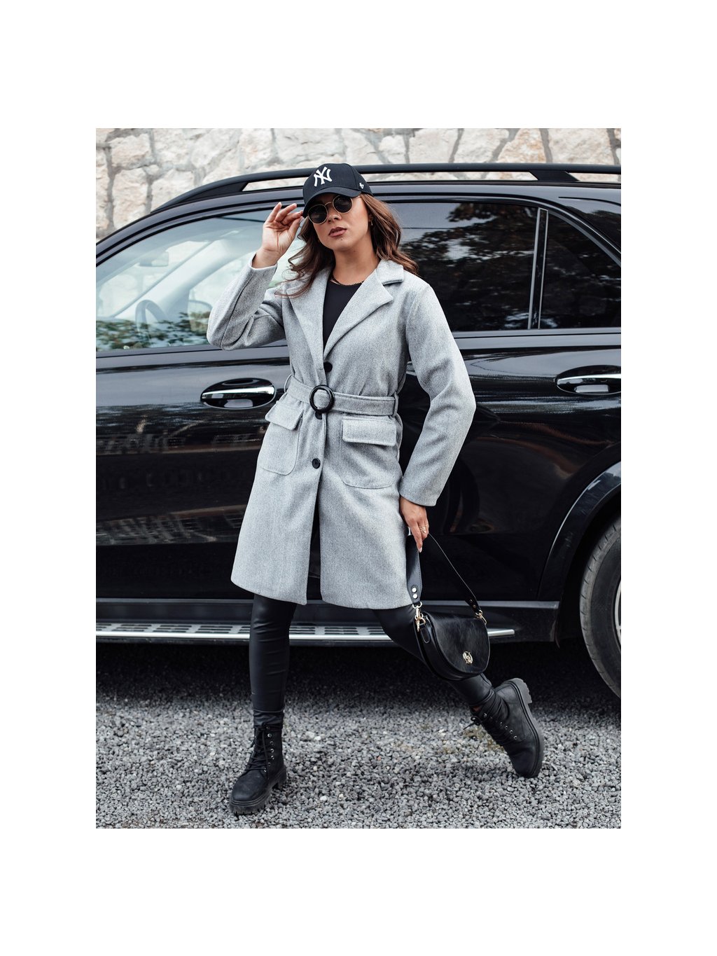 Sivý dámsky jednoradový jesenný kabát SCHERMI