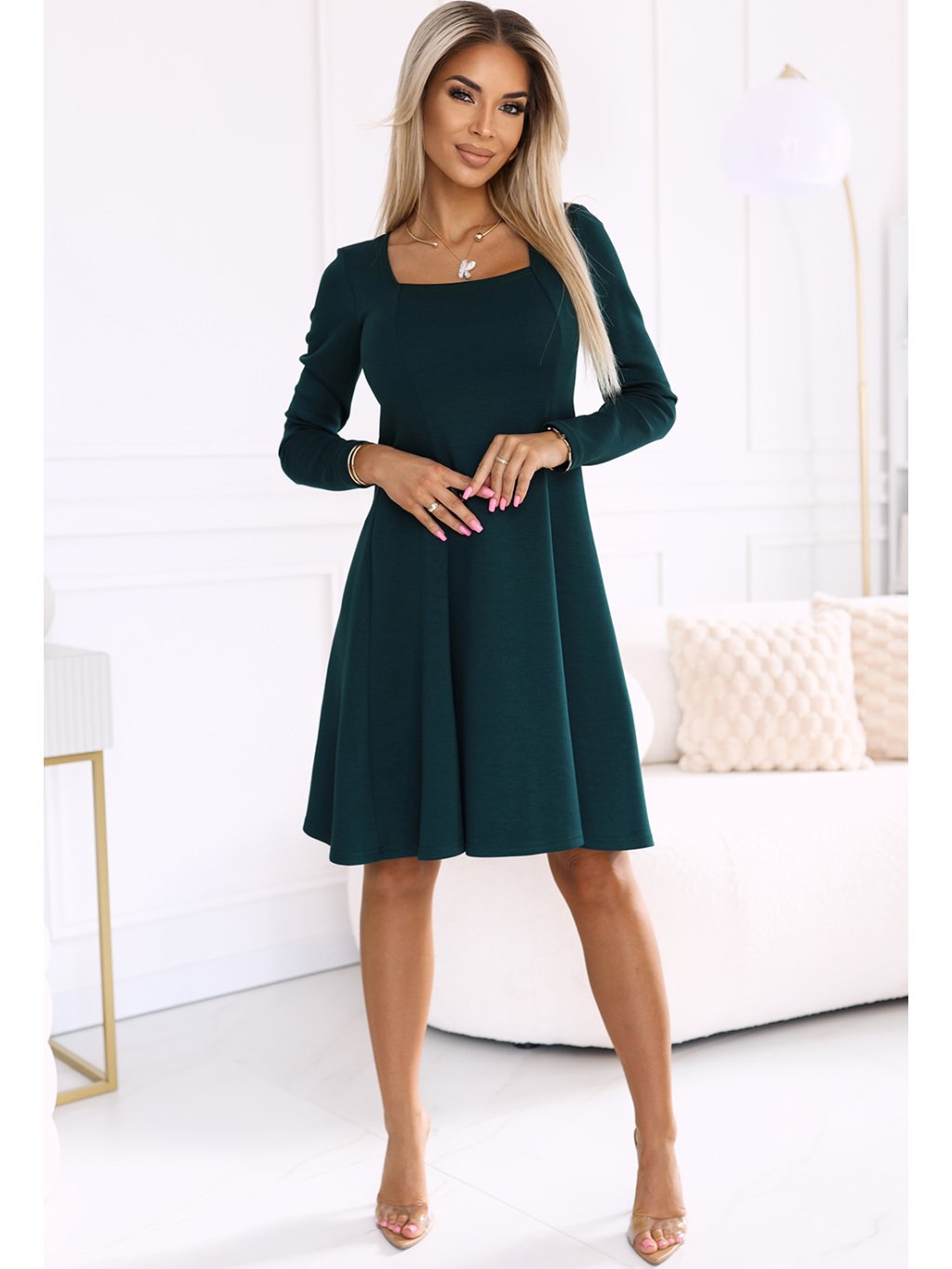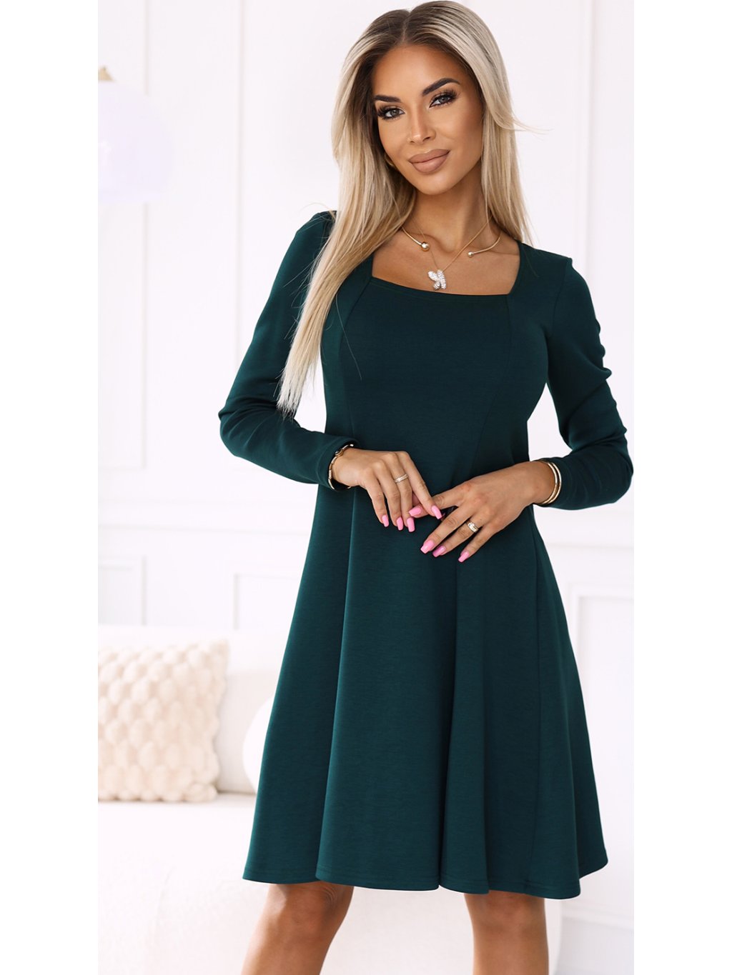 Smaragdovo zelené mini šaty s dlhým rukávom IVANA