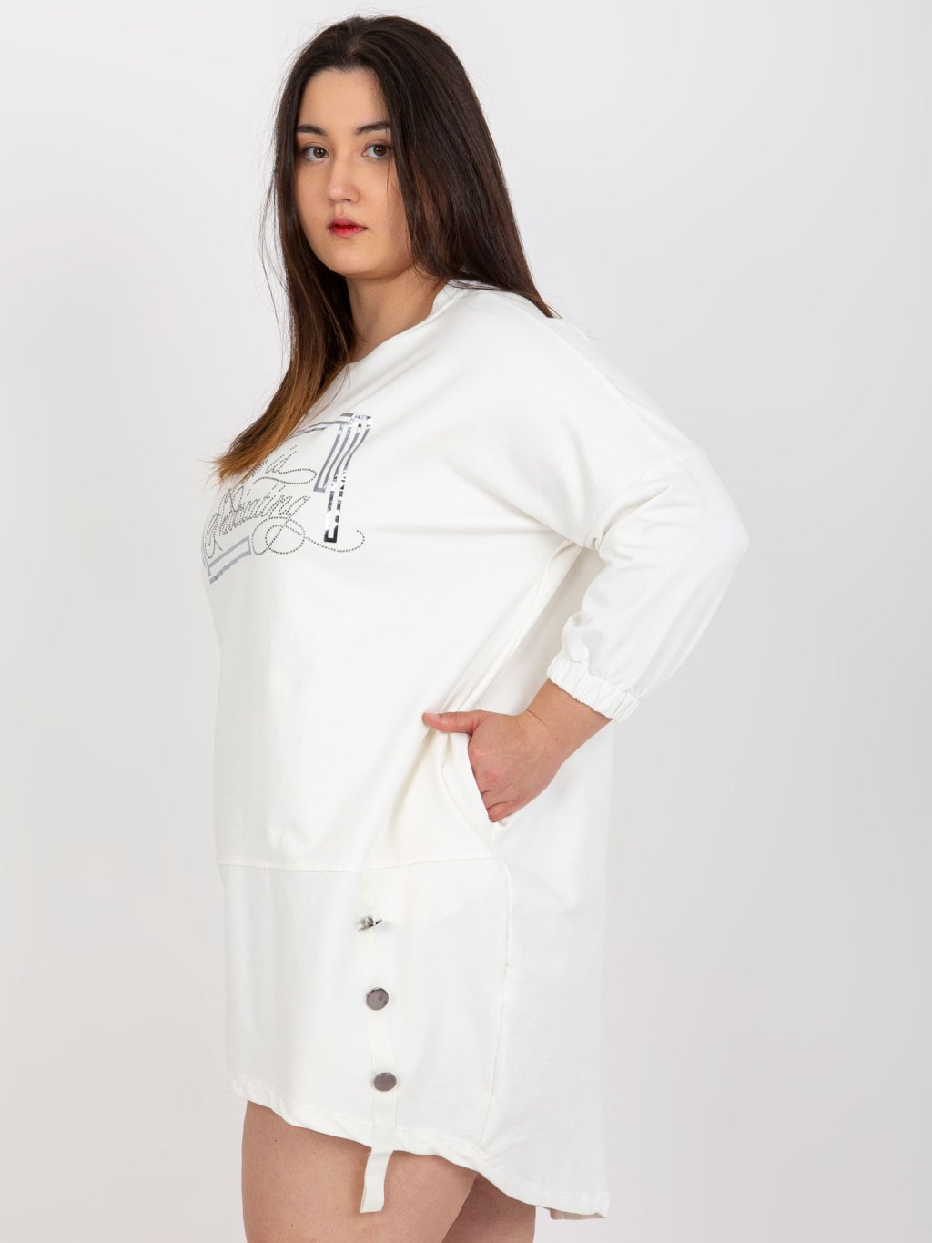 Smotanová asymetrická tunika s nápisom