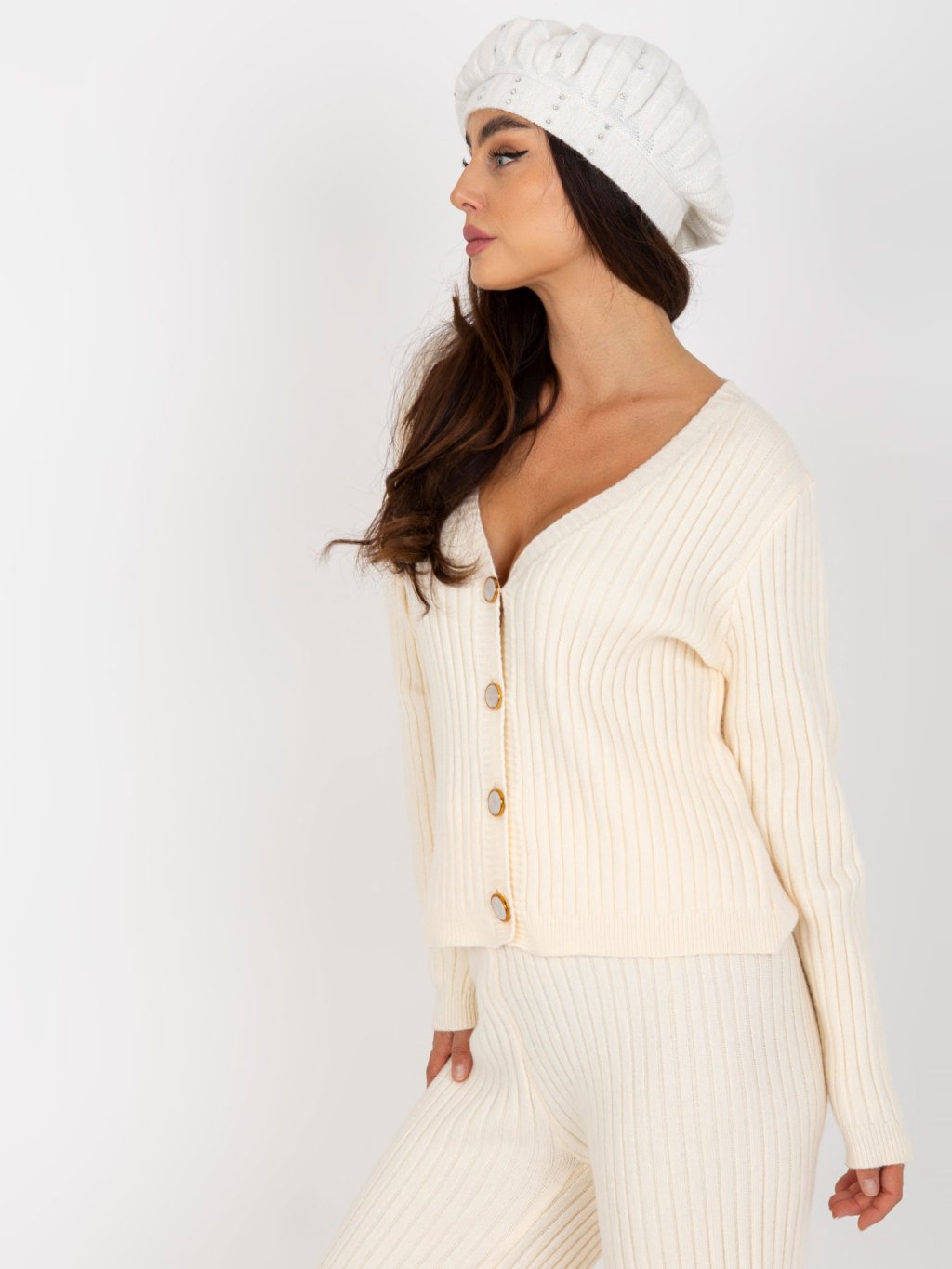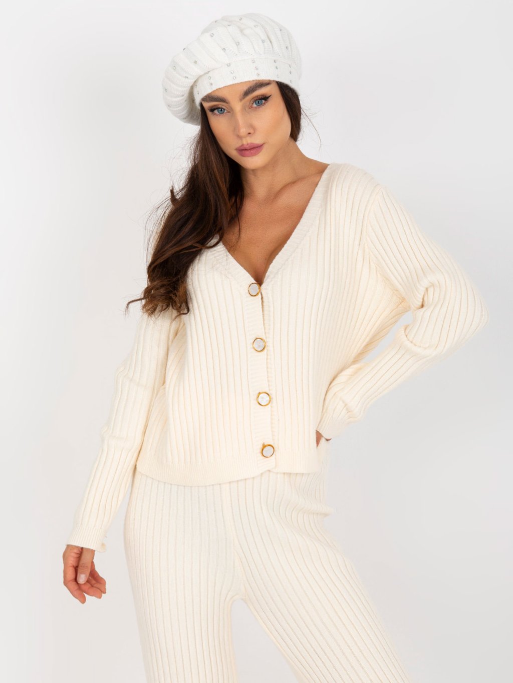 Smotanová čiapka s kamienkami