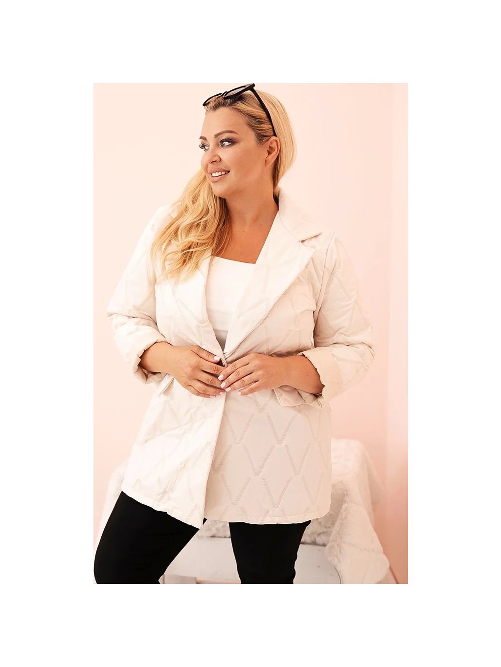Smotanová dámska Plus Size prechodná bunda s prešívaním