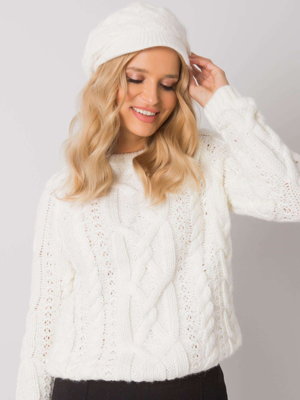Smotanová pletená čiapka so šiltom
