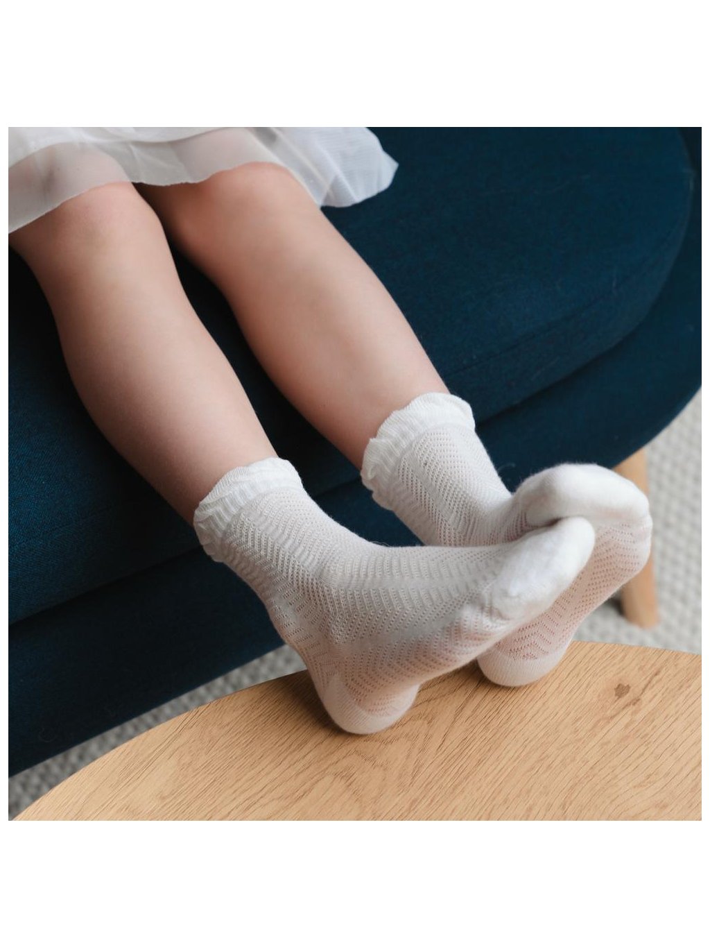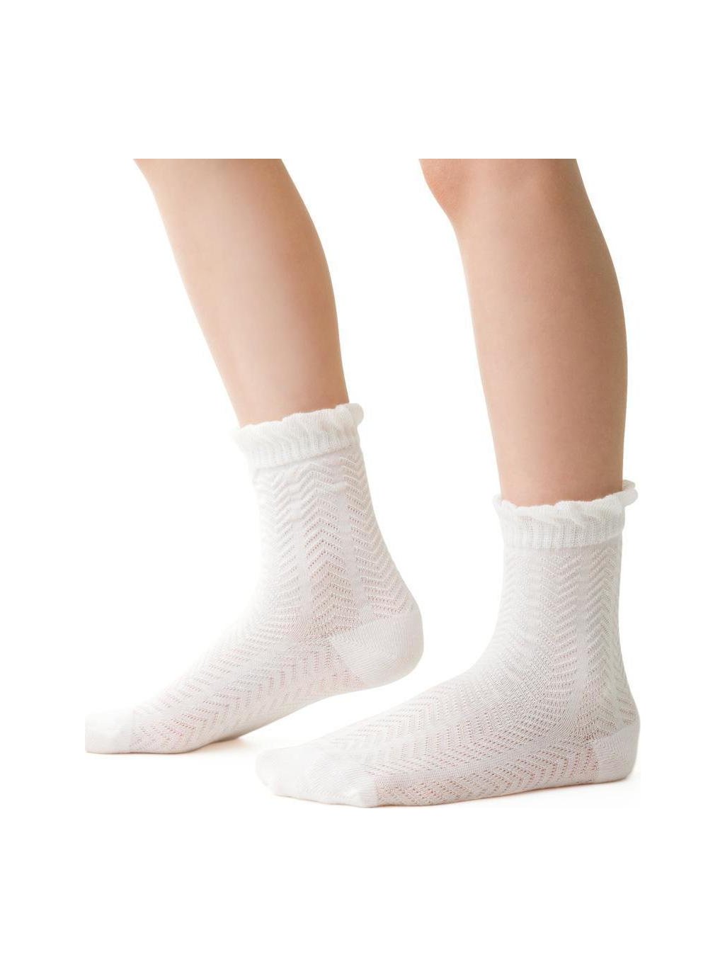 Smotanové dievčenské ponožky s háčkovaným vzorom