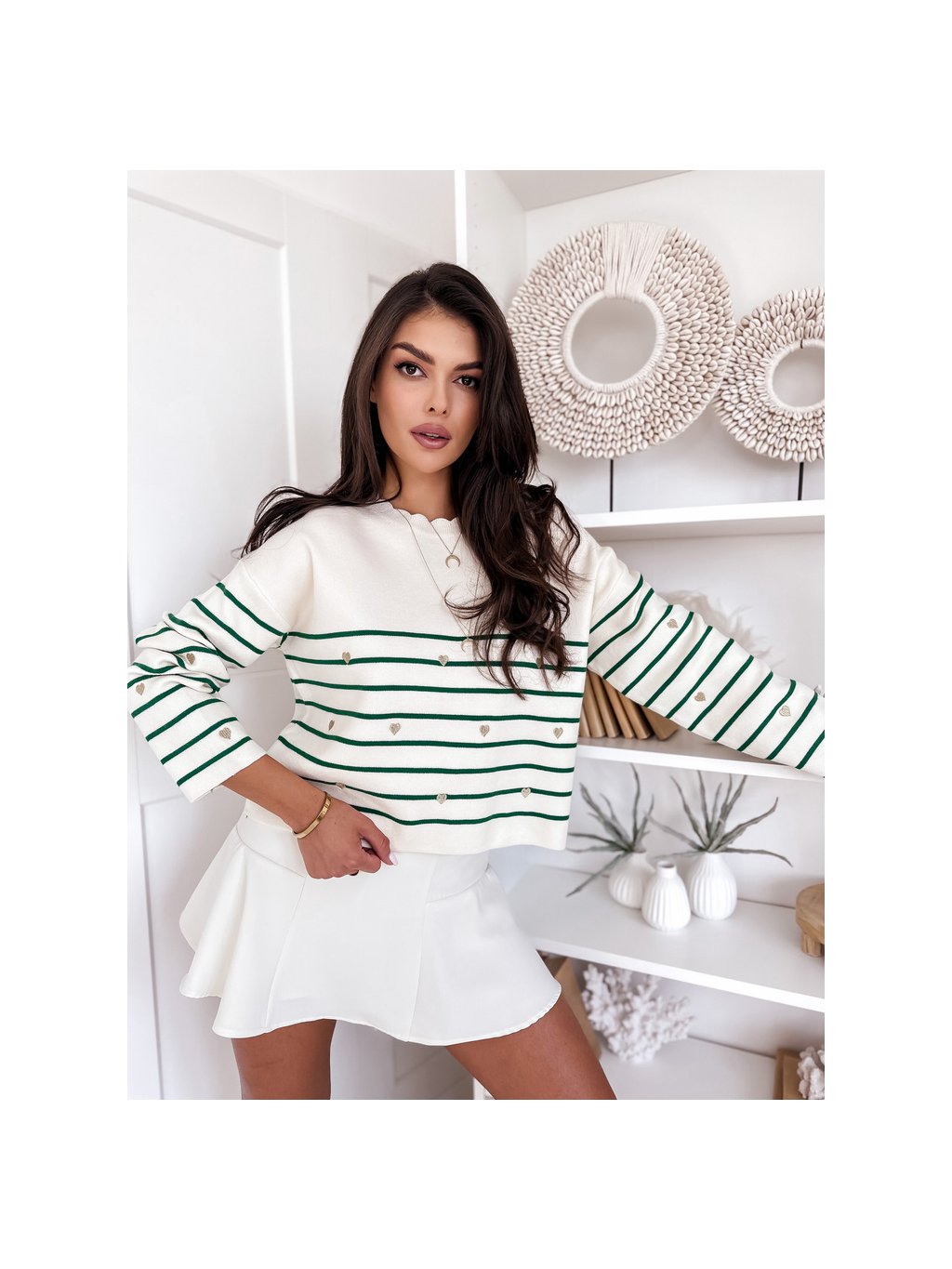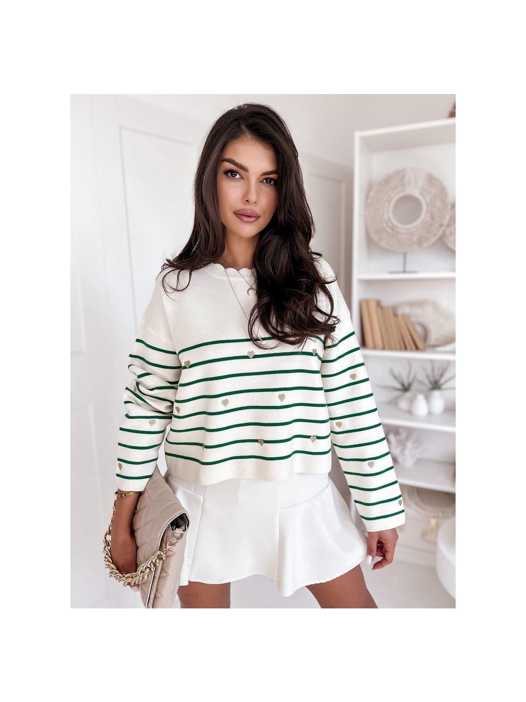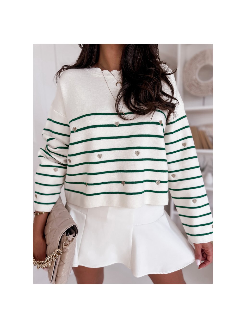 Smotanovo-zelený pruhovaný sveter so srdiečkami VELORIA