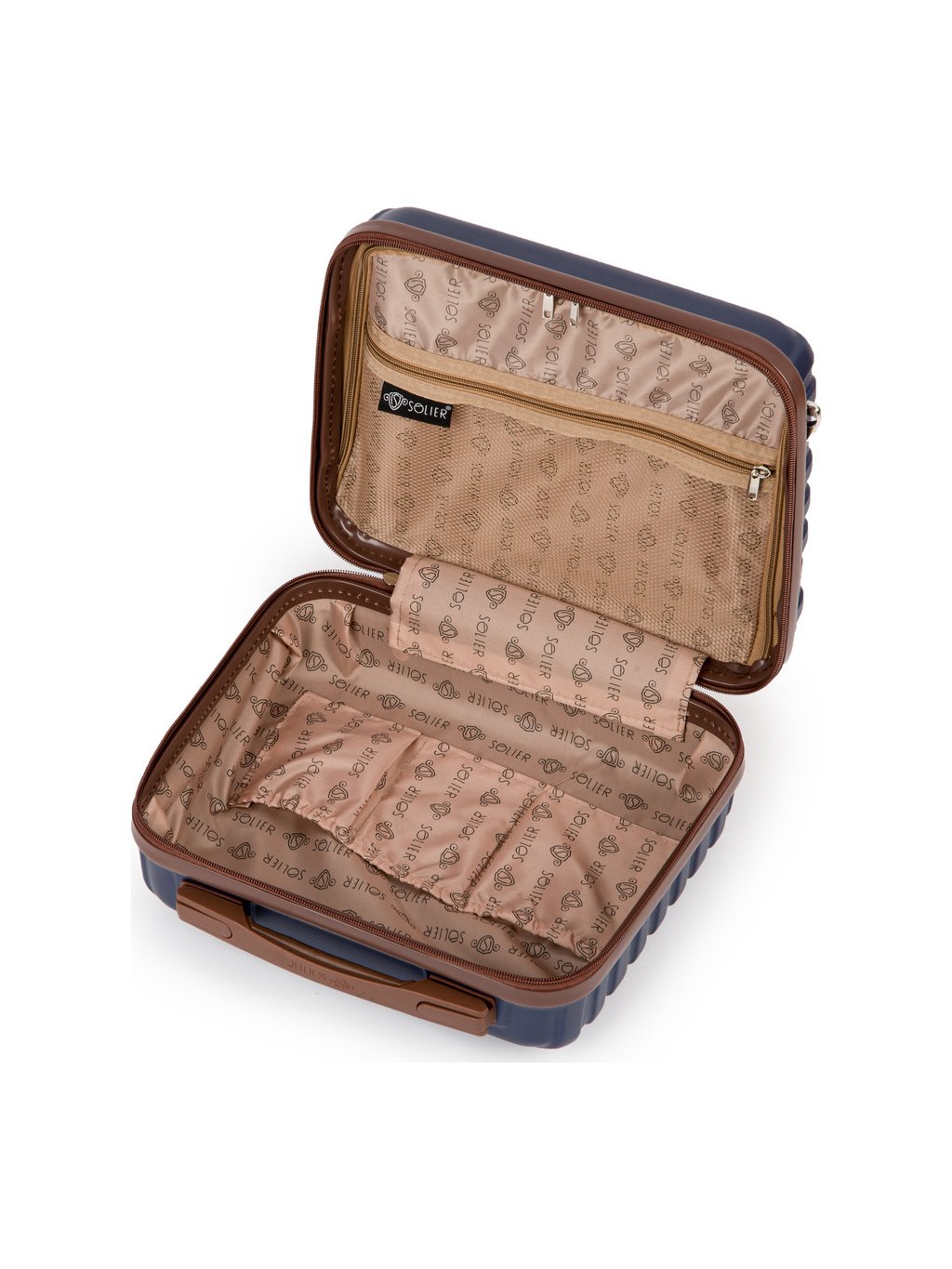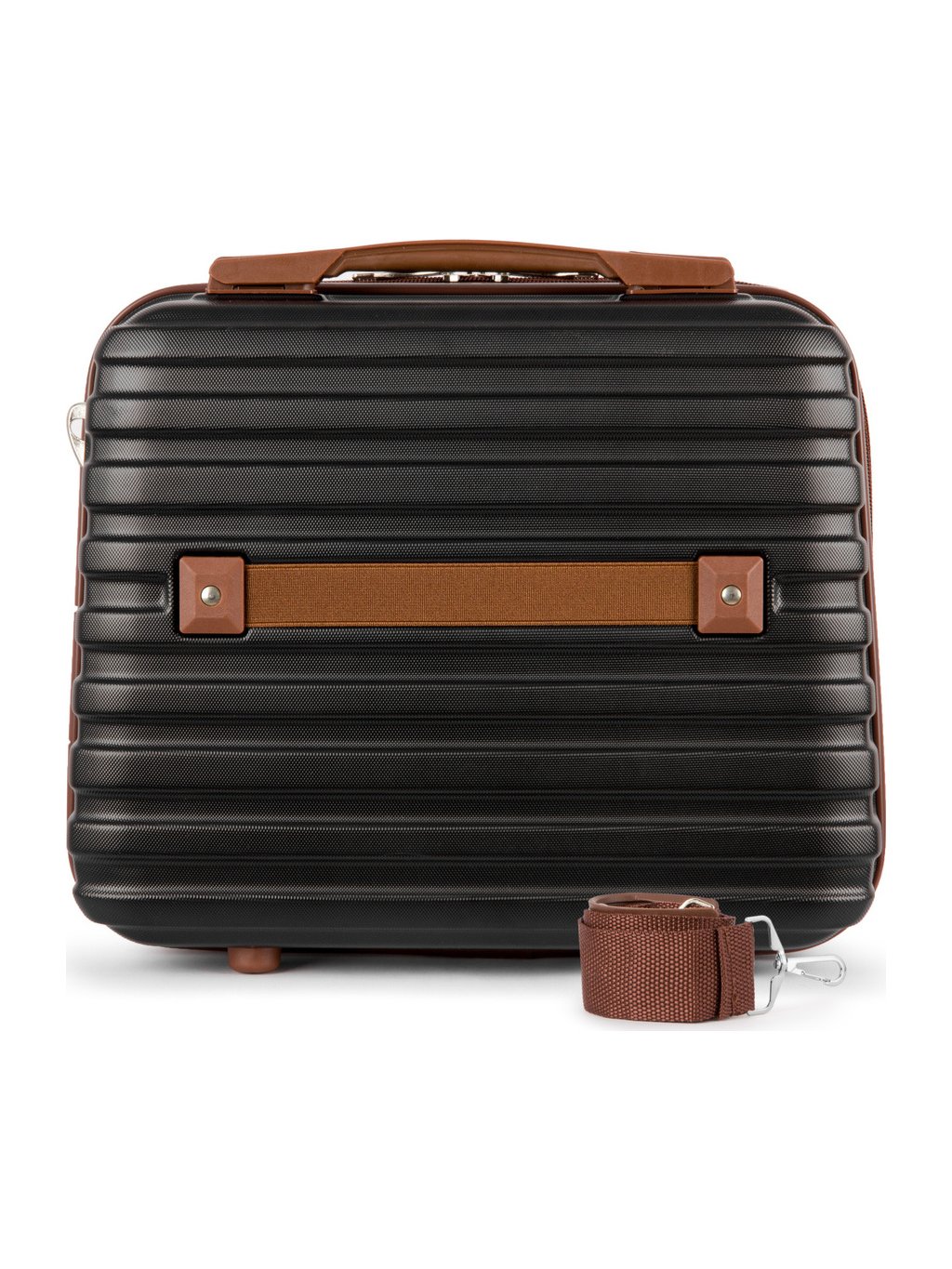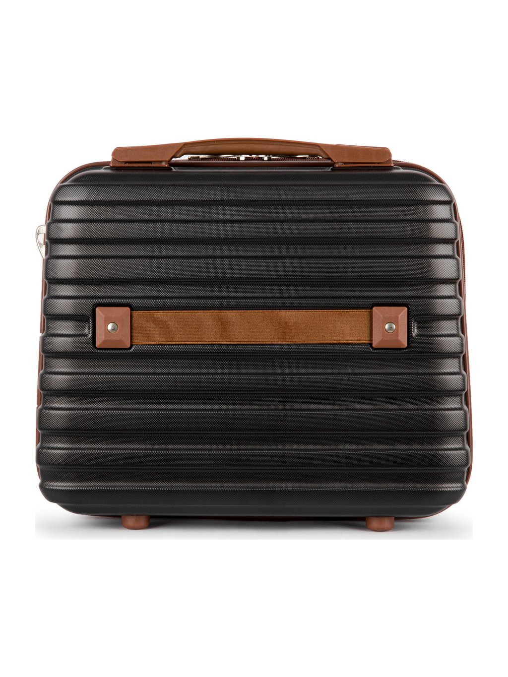 SOLIER Čierny cestovný kozmetický kufor STRIPE