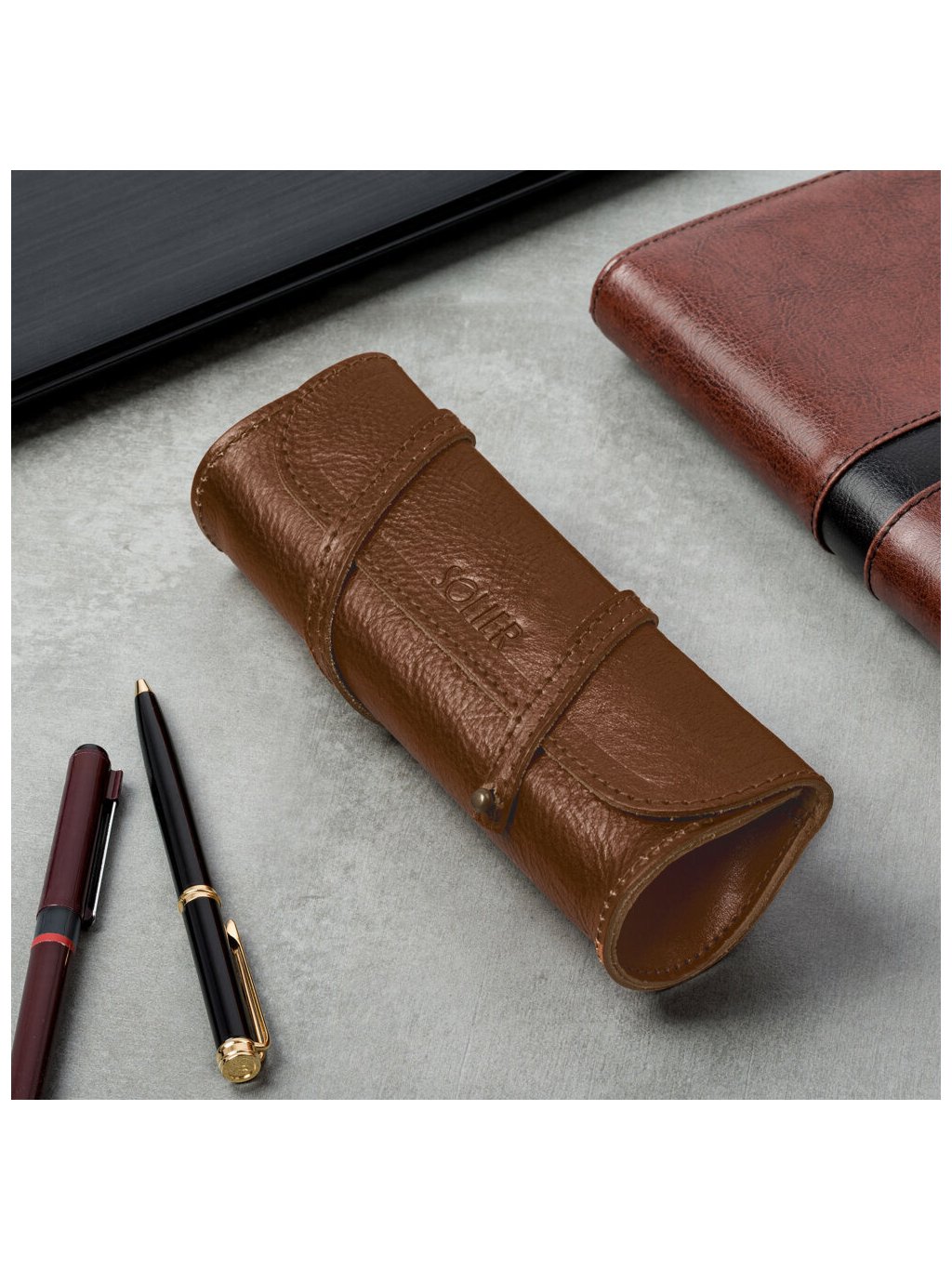 Solier Hnedé kožené púzdro na perá