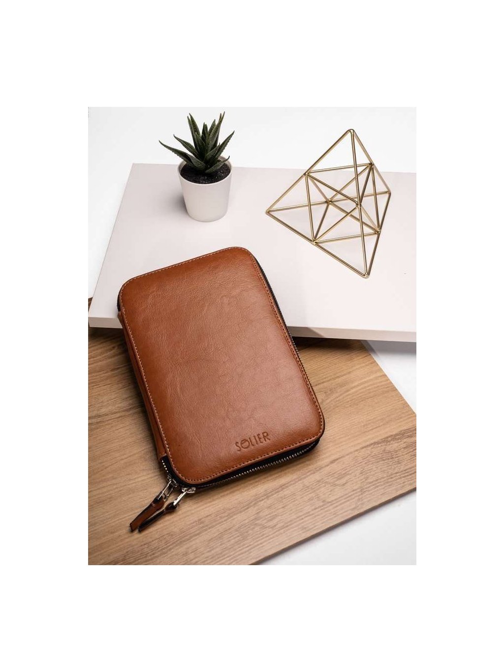SOLIER Hnedý kožený organizér