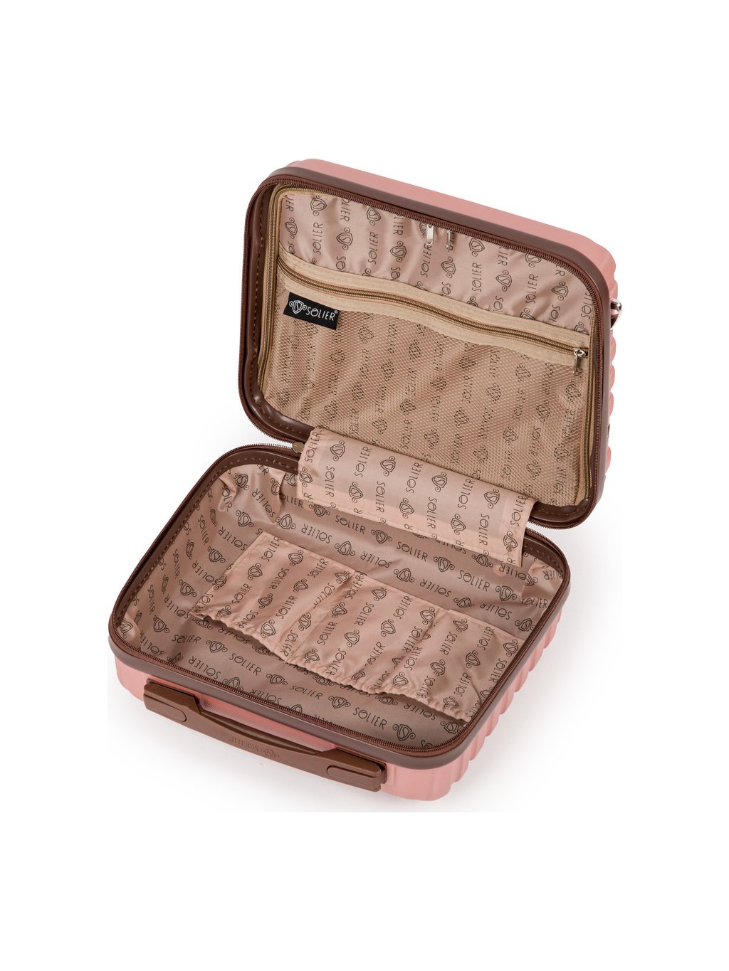 Solier Ružový cestovný kozmetický kufor STRIPE