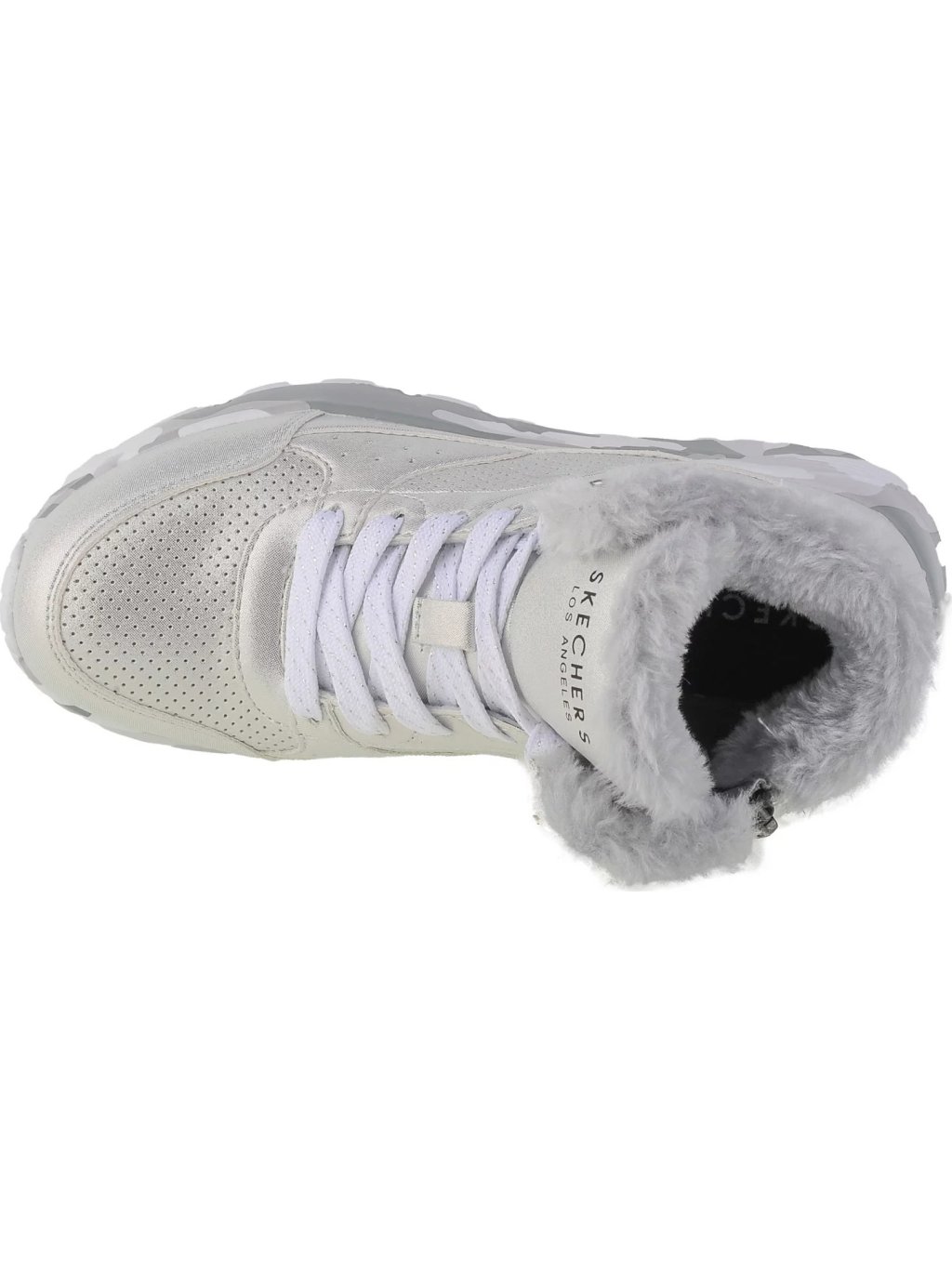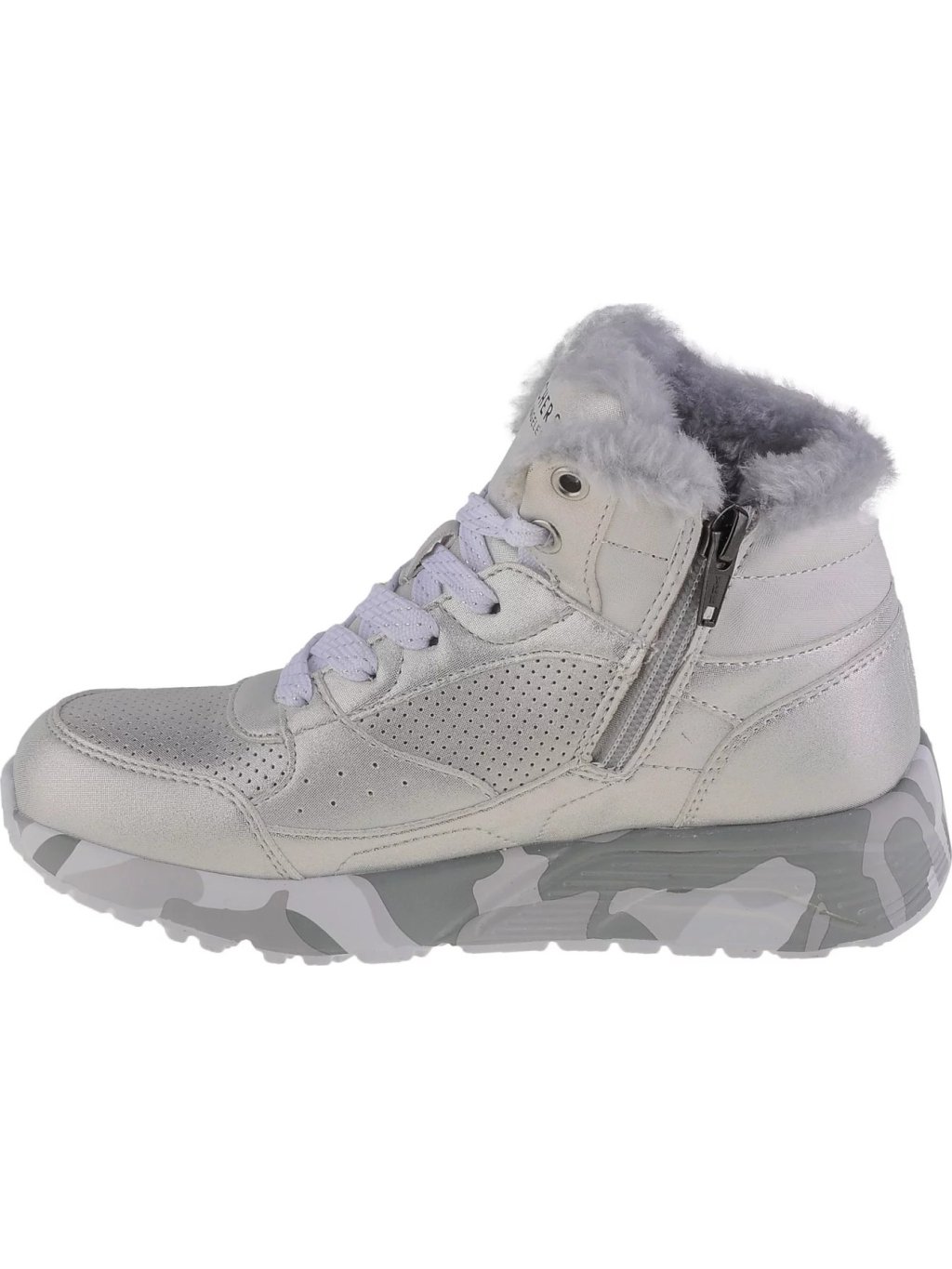 Strieborné dievčenské členkové zimné topánky Skechers Uno Lite - Camo Dazzle