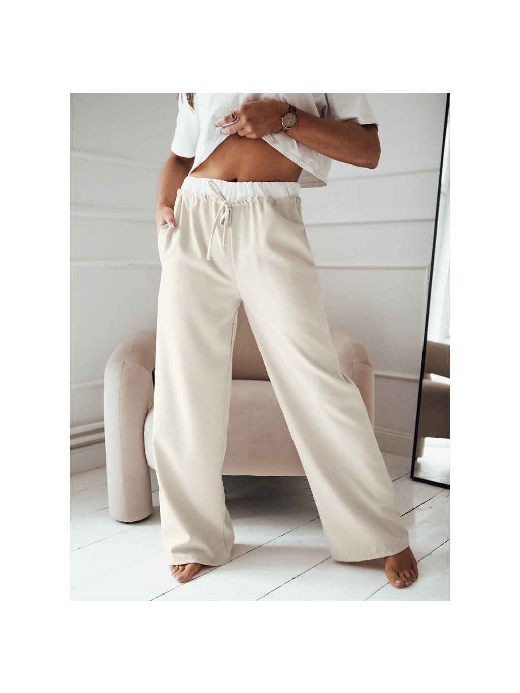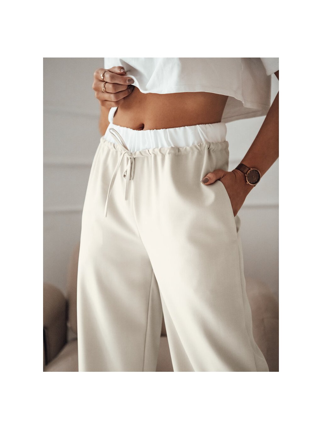 Svetlobéžové široké nohavice DARAMY