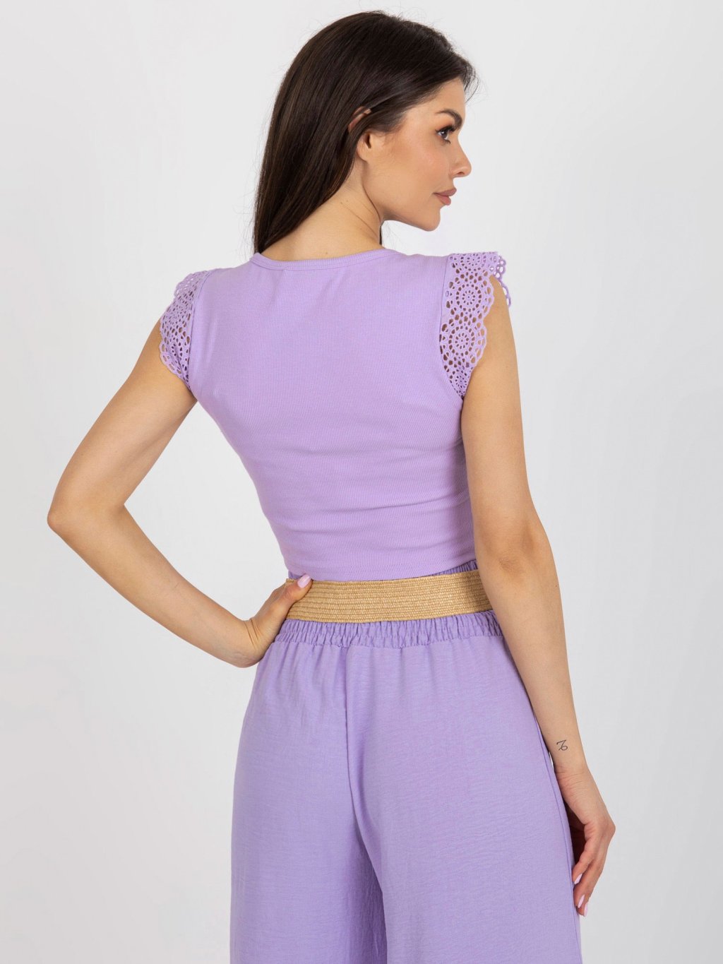 Svetlofialová krátka rebrovaná blúzka s čipkou