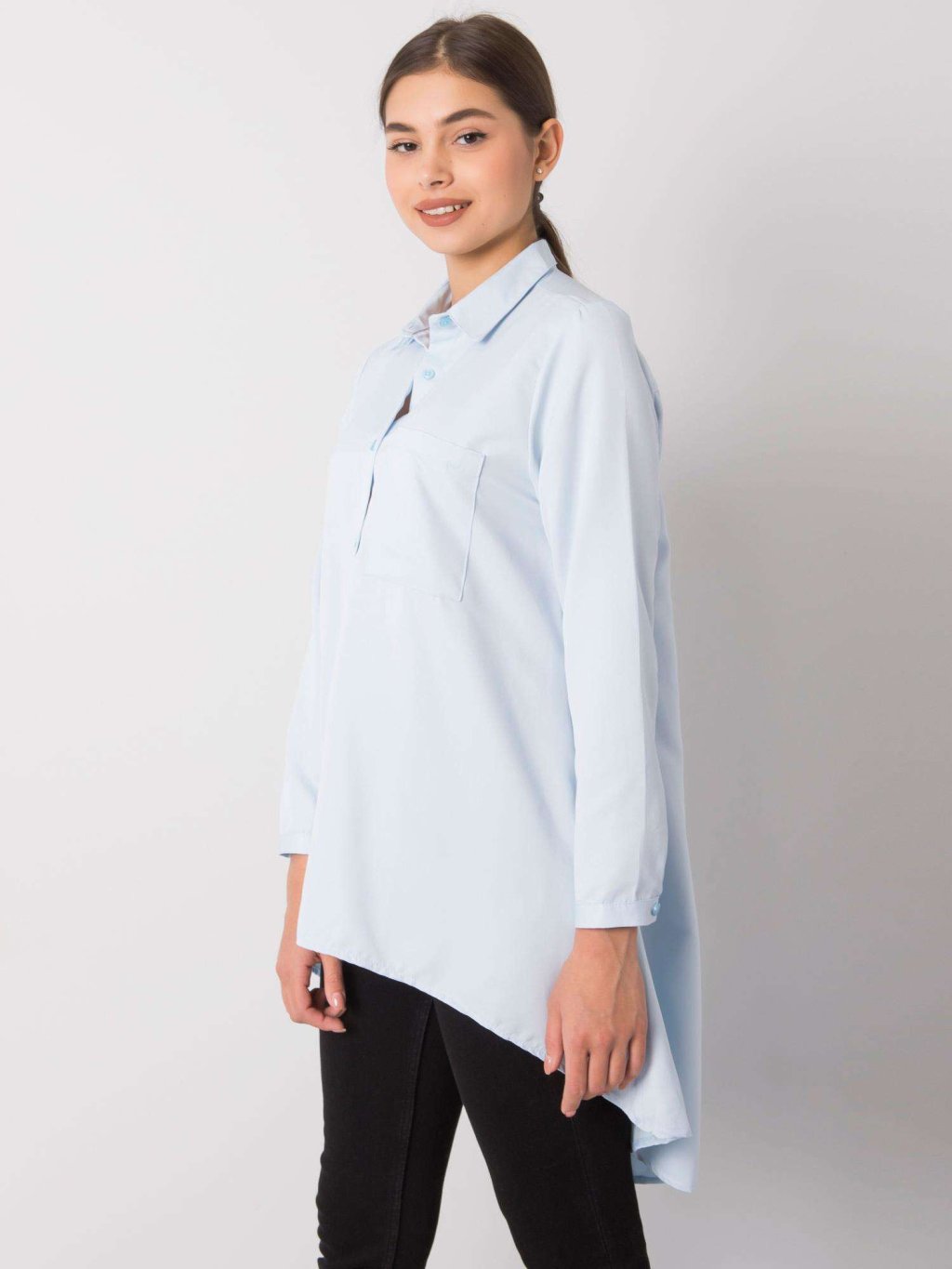 Svetlo modrá dámska asymetrická košeľa