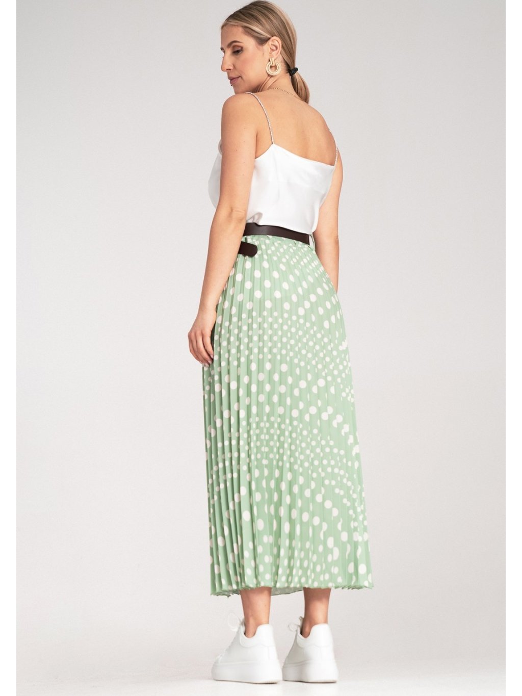 Svetlozelená dámska plisovaná midi sukňa s bodkami