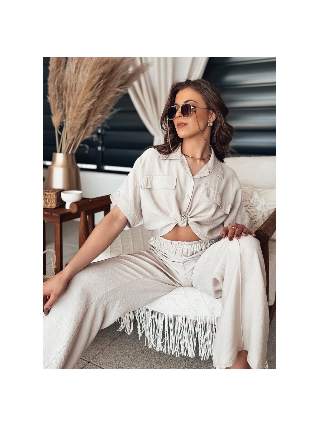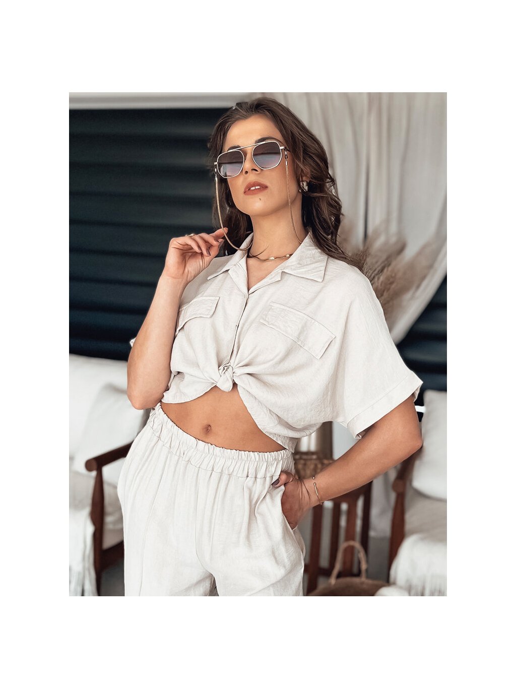 Smotanová crop košeľa GRITAN