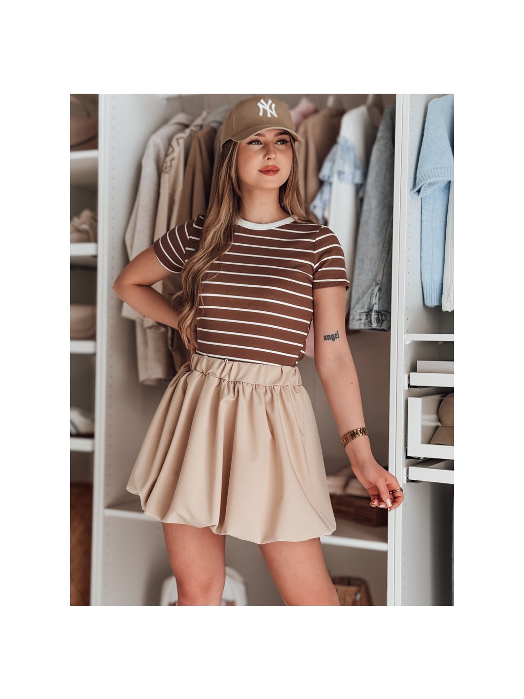 Svetlobéžová dámska balónová mini sukňa PUFFELLA