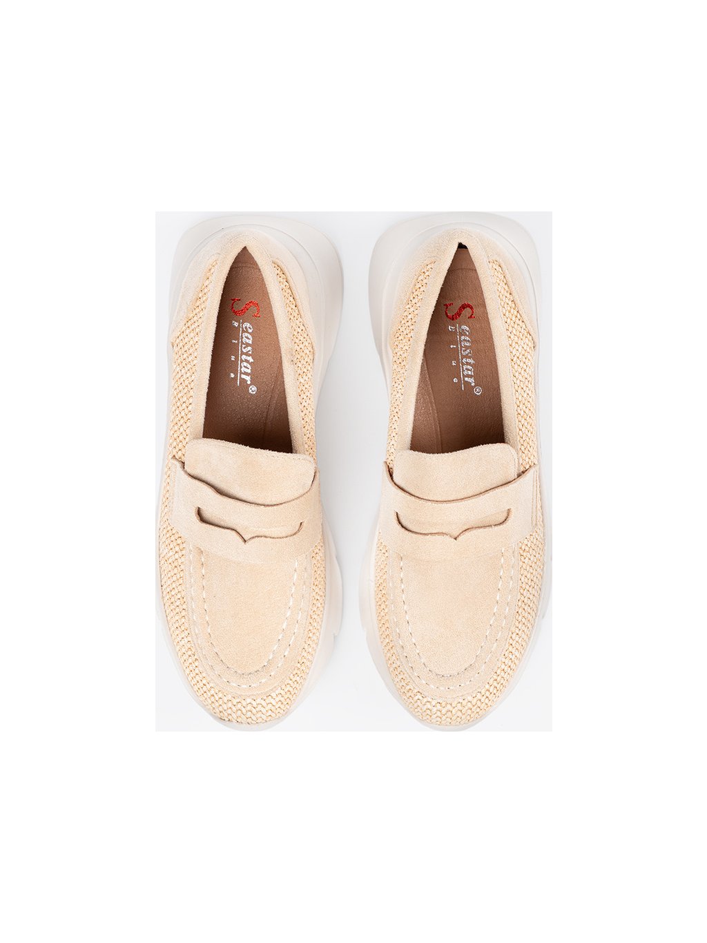 Svetlobéžové dámske nazúvacie tenisky na hrubej podrážke