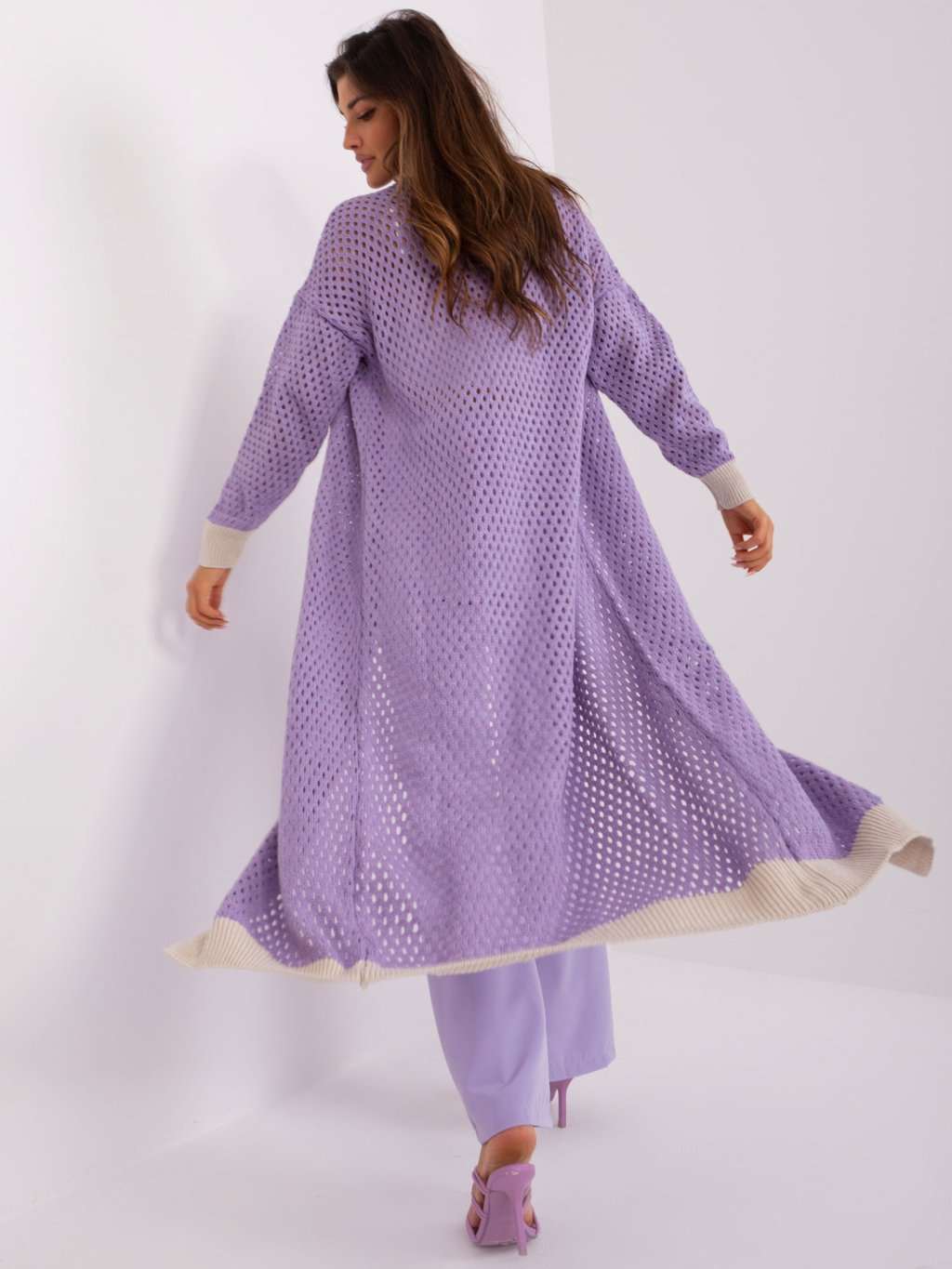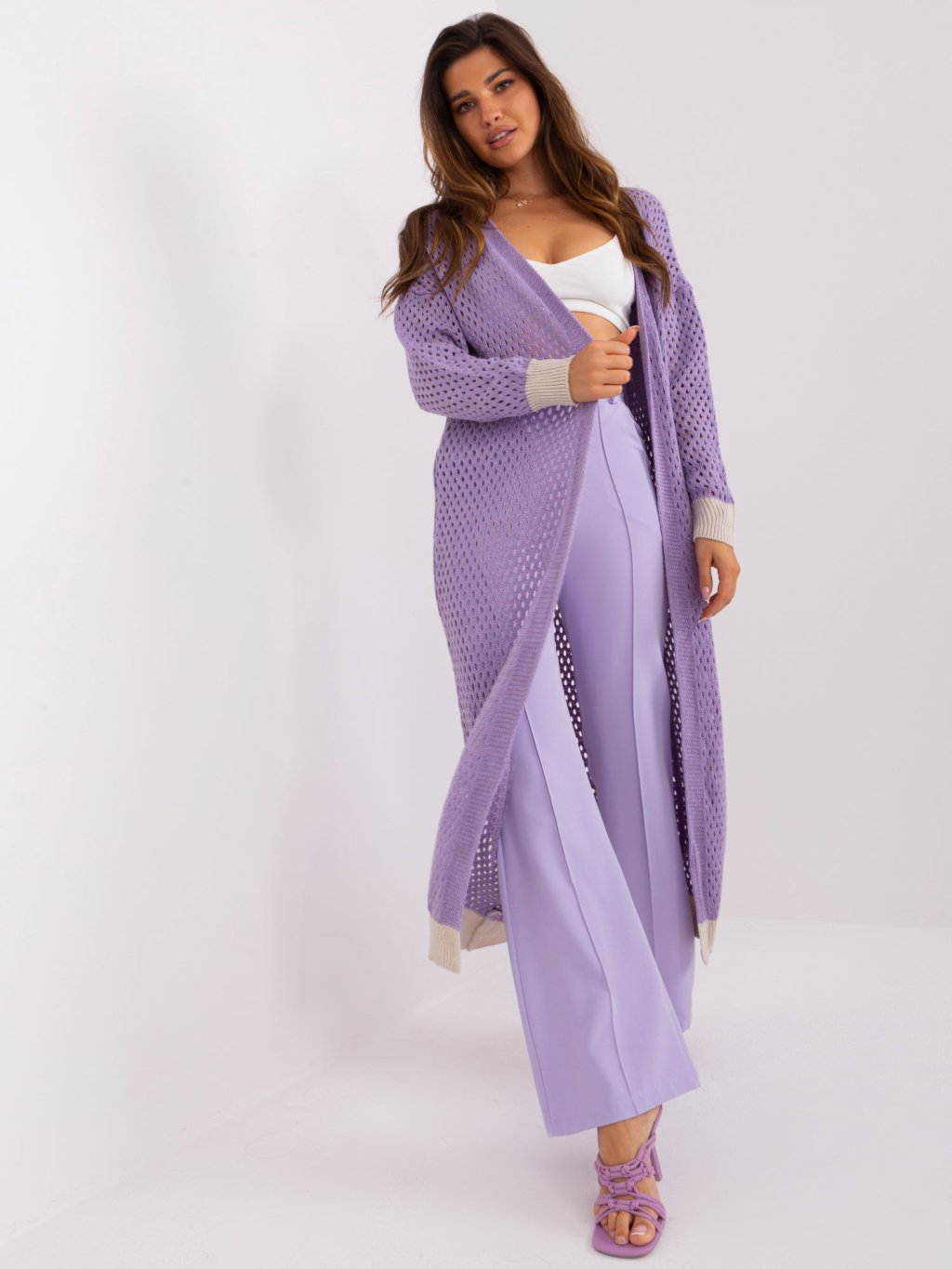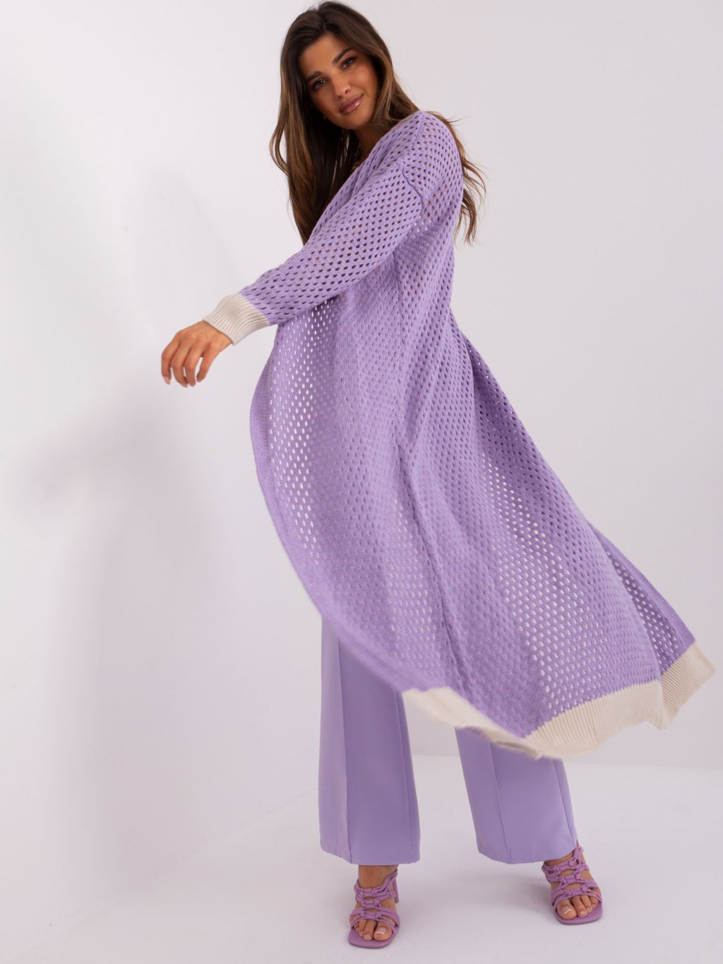 Svetlofialový pletený dlhý kardigan
