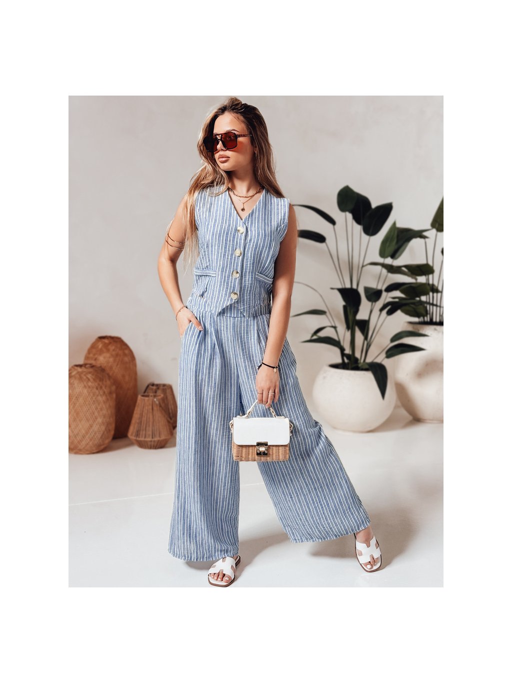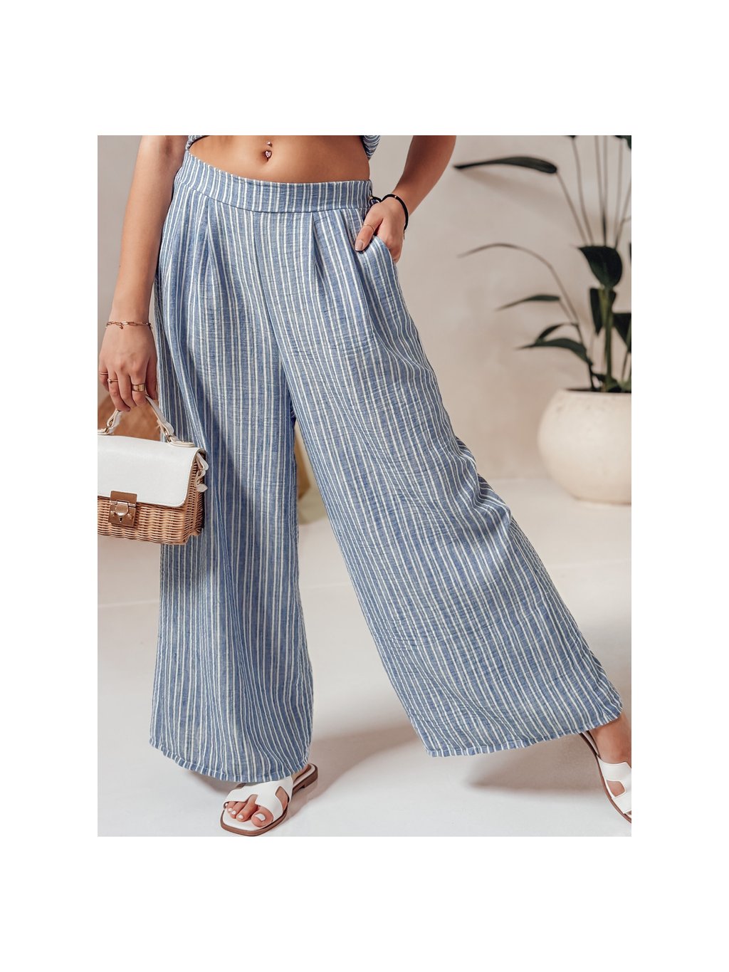 Svetlomodré dámske pruhované široké nohavice MODERES