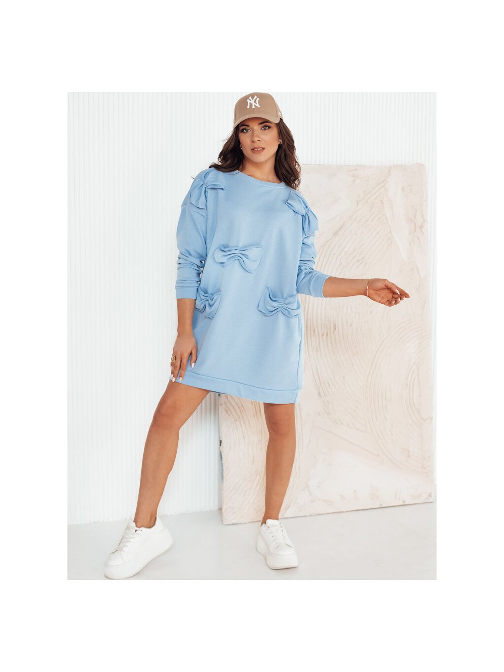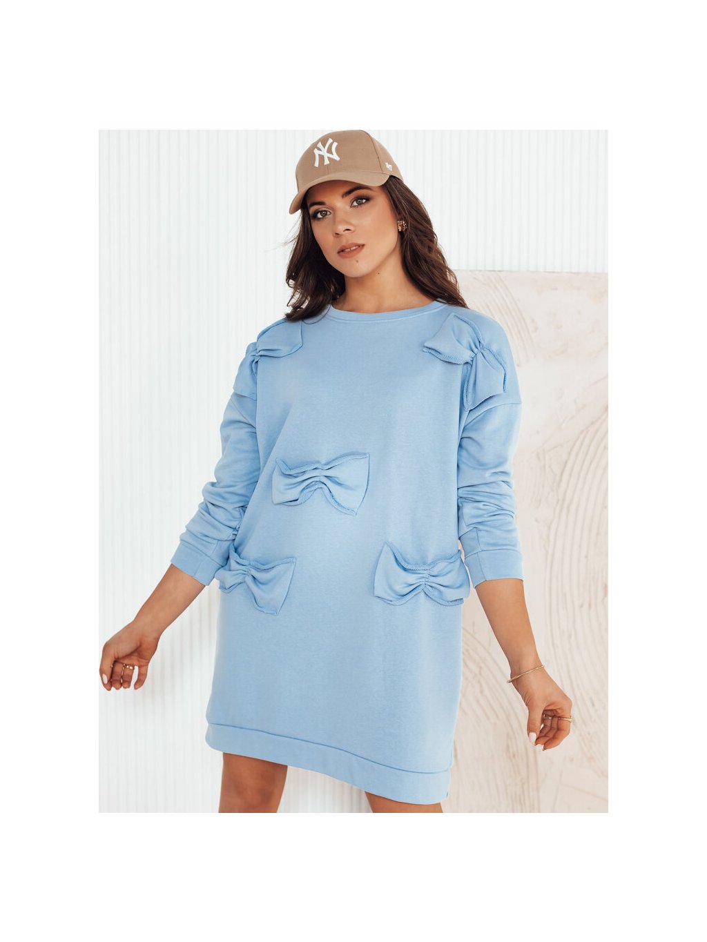 Svetlomodré mikinové šaty s mašličkami GASTOR