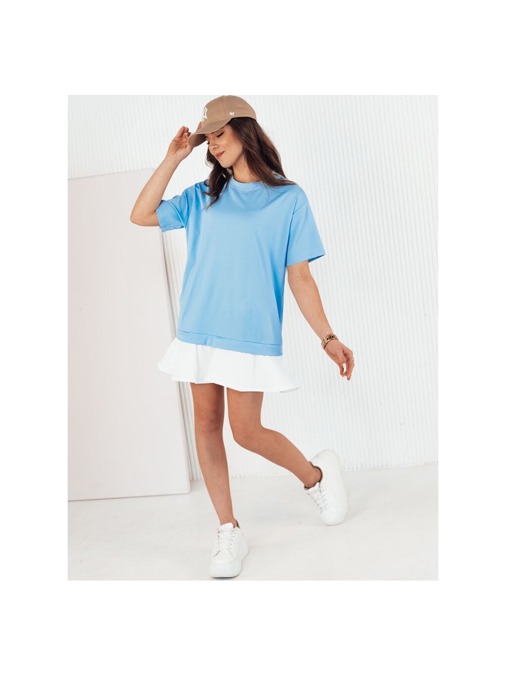 Svetlomodré mini šaty s volánom PULLER