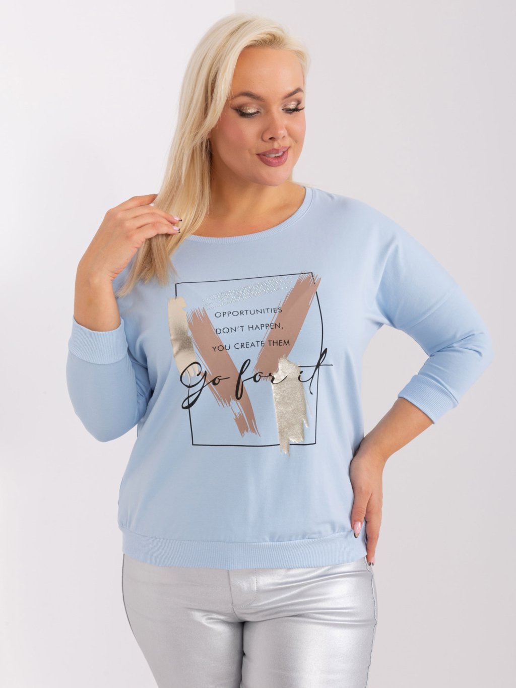 Svetlomodré tričko s potlačou a 3/4 rukávom