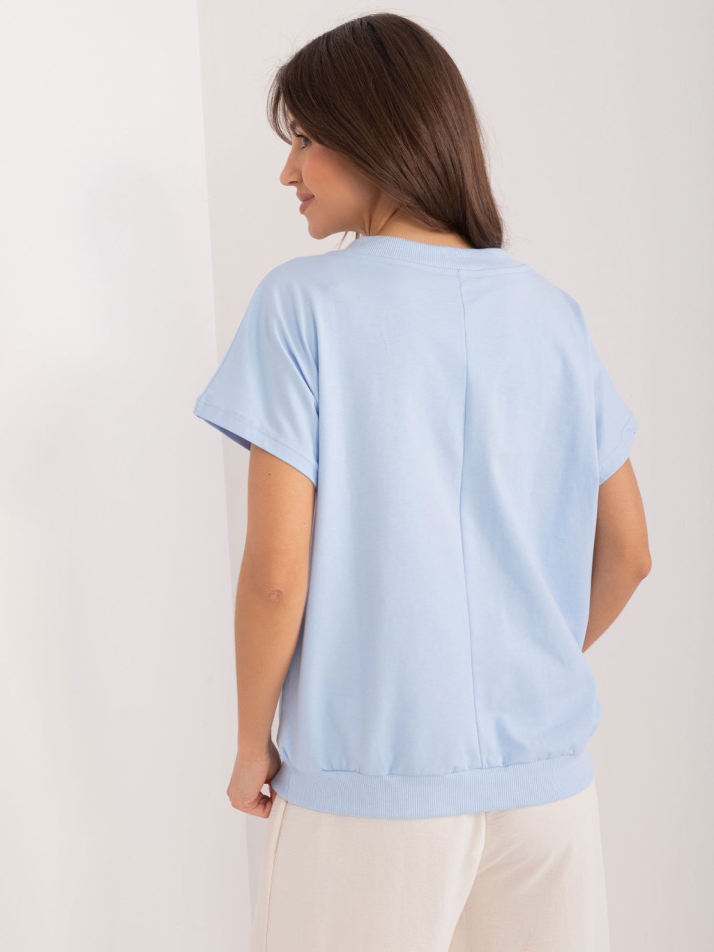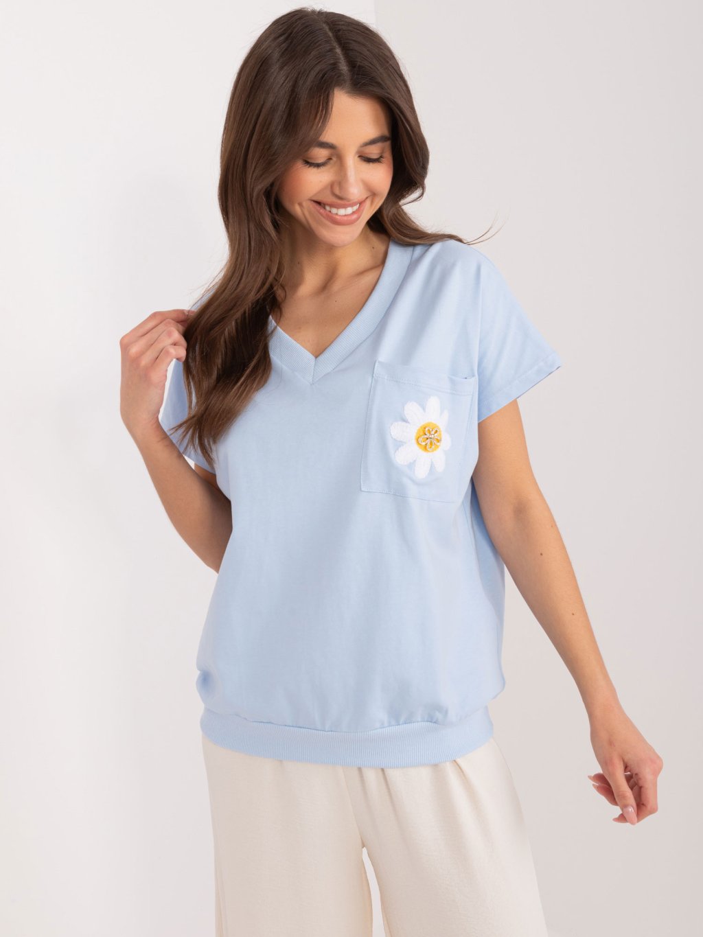 Svetlomodré tričko s výstrihom a výšivkou na vrecká