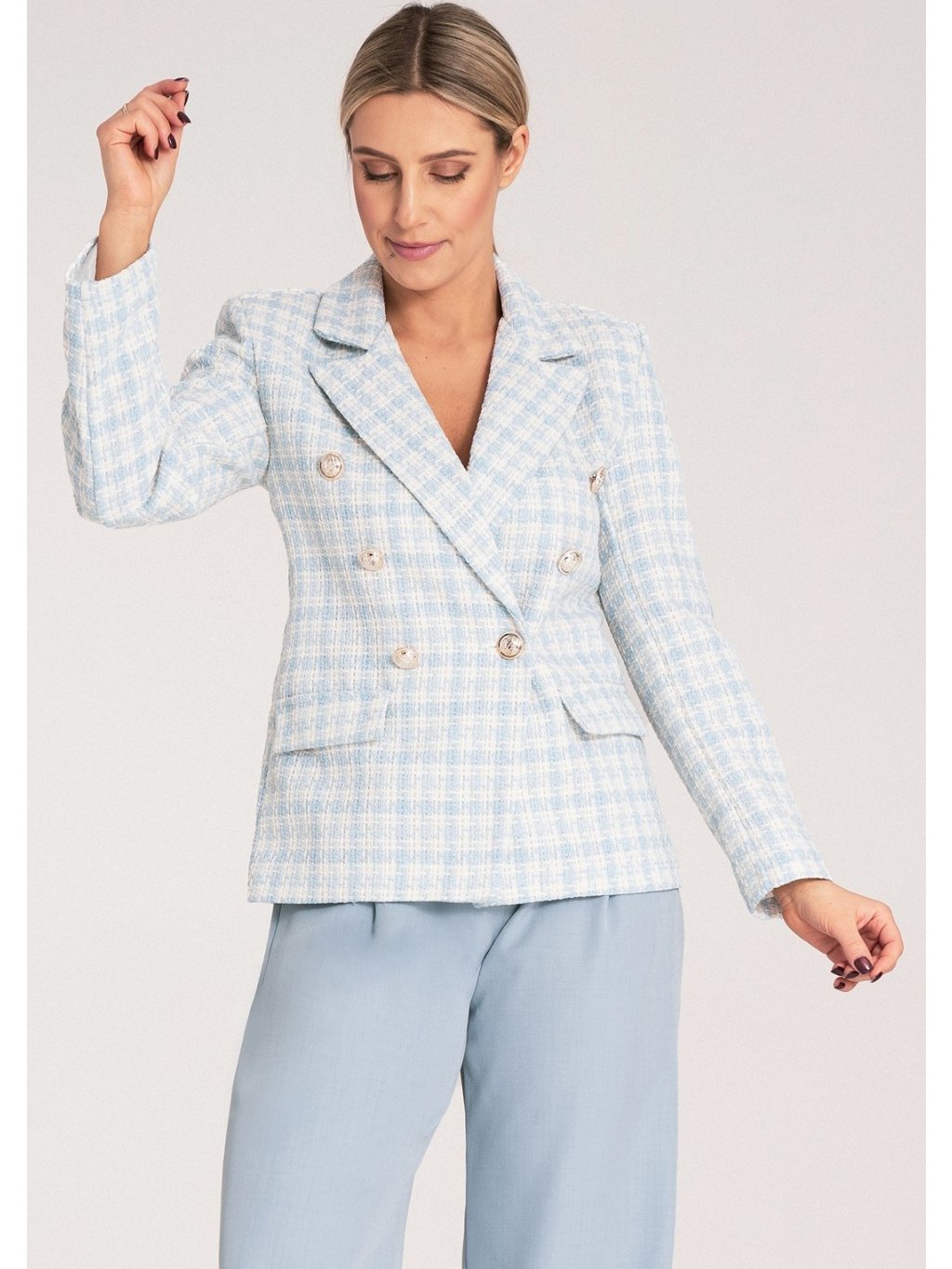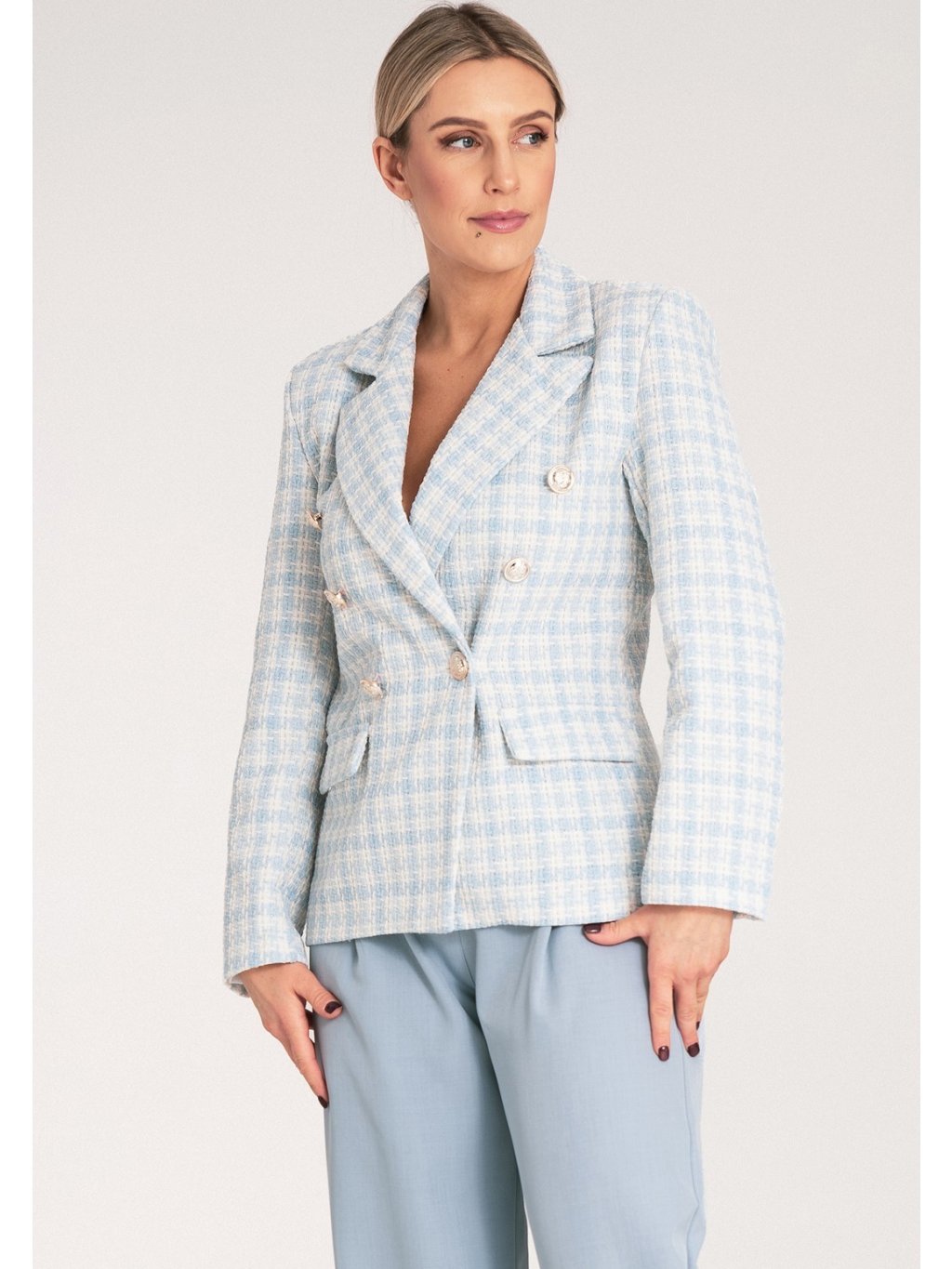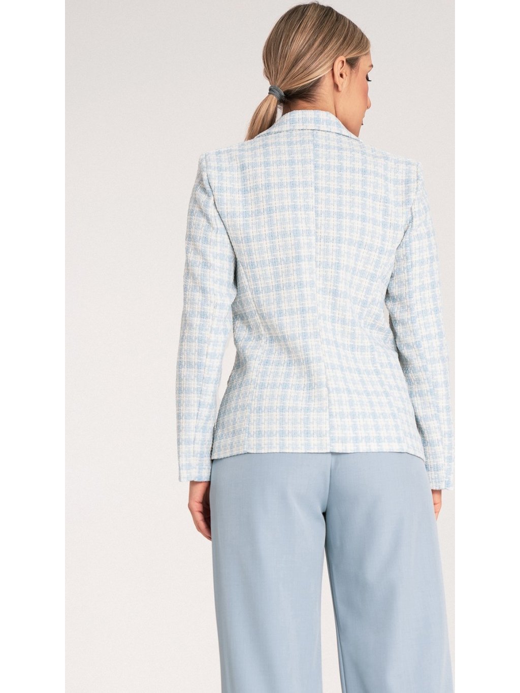 Svetlomodrý dámsky blejzer z elegantnej žakárovej látky