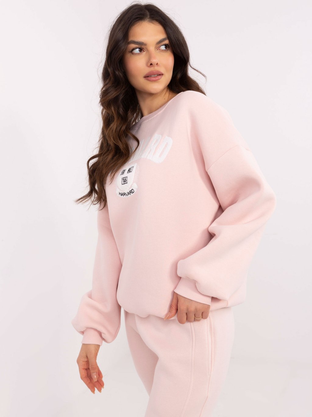 Svetloružová dámska zateplená mikina bez kapucne