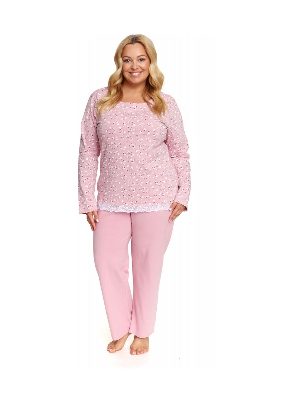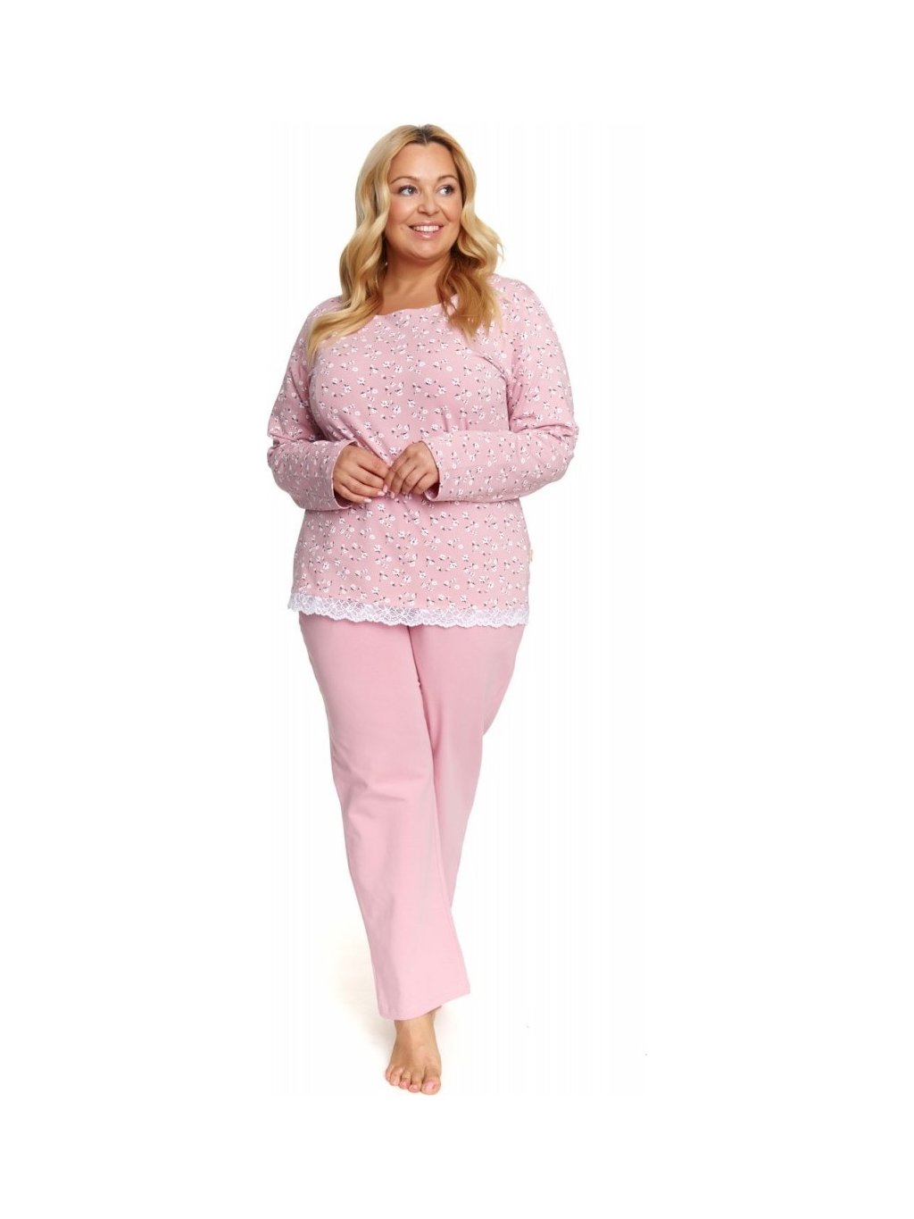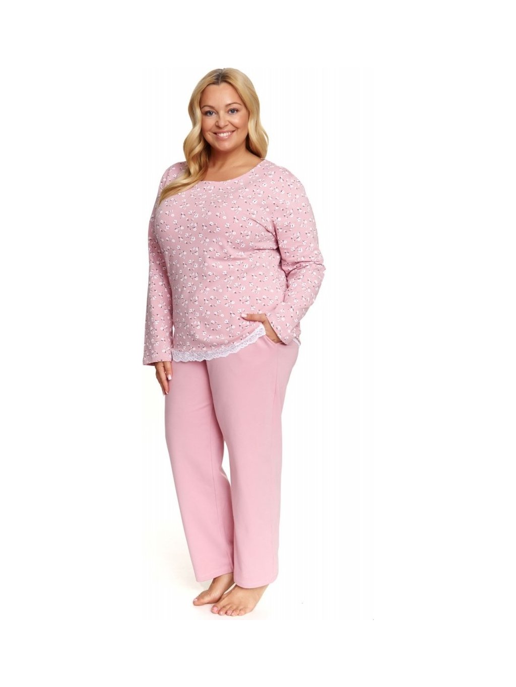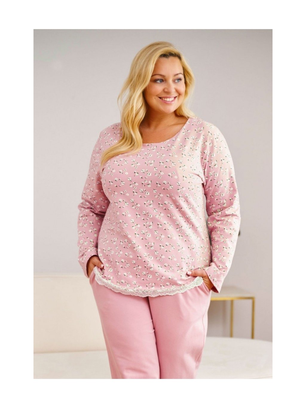 Svetloružové dámske pyžamo s kvetinovou potlačou