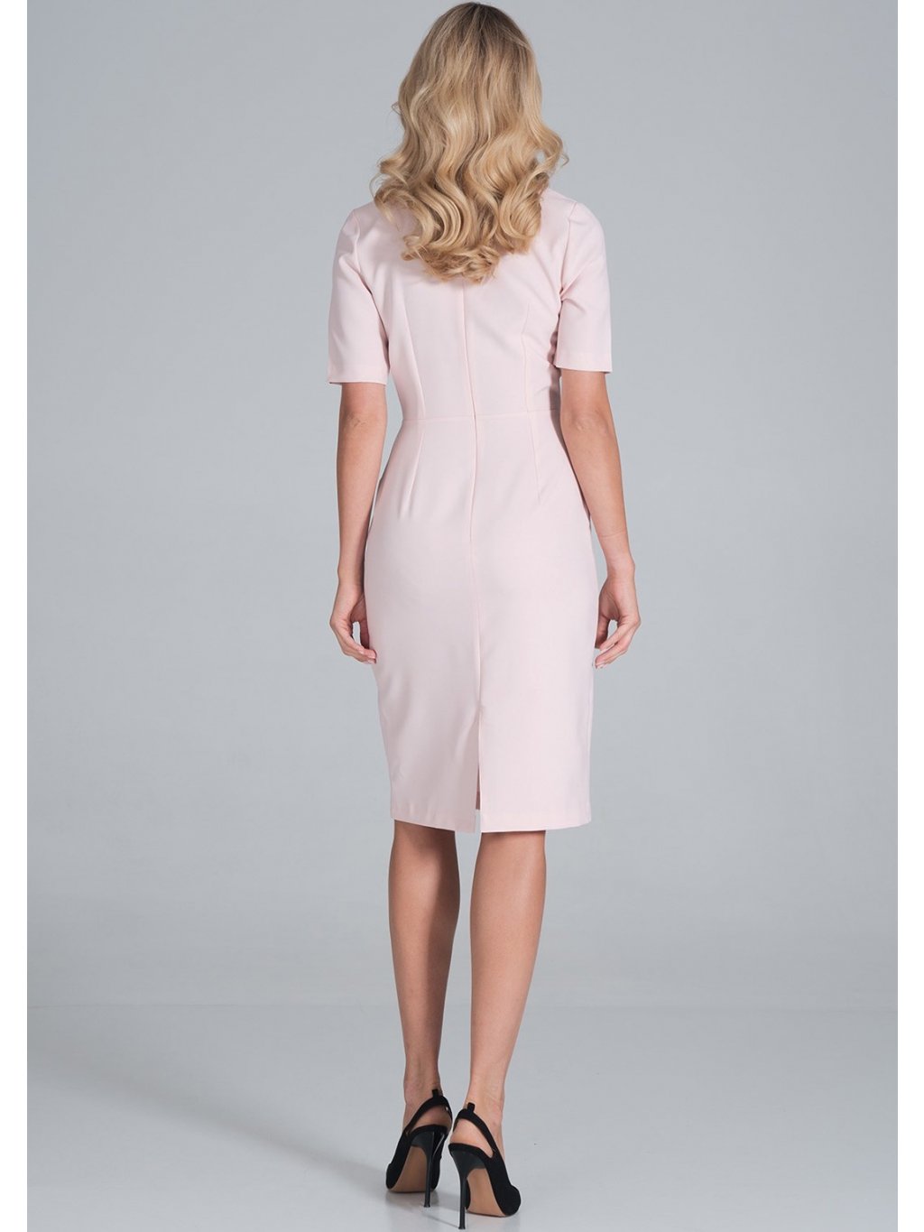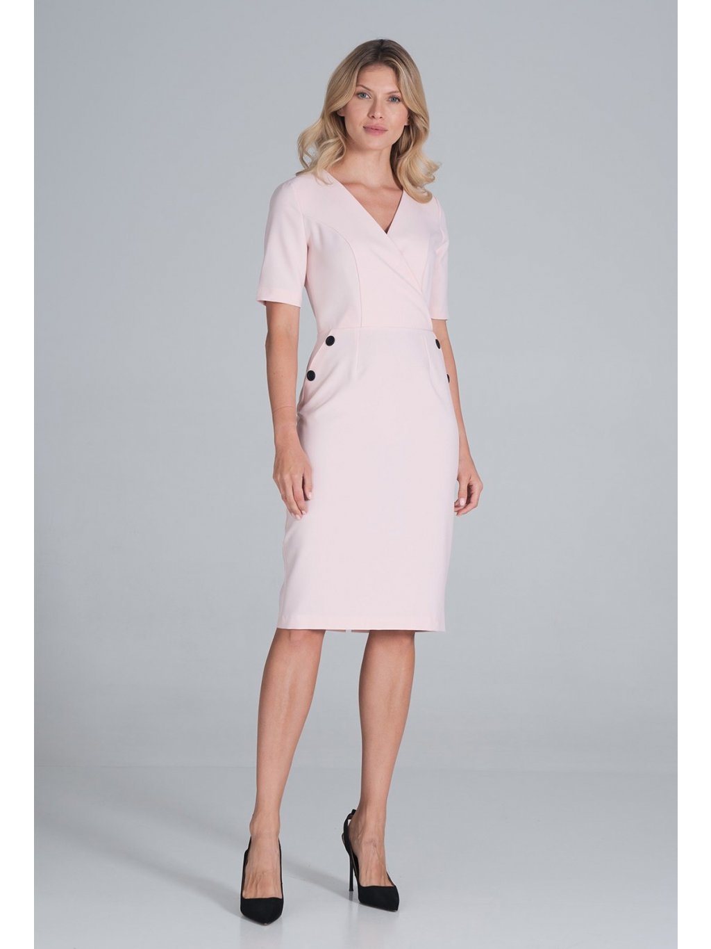 Svetlo ružové púzdrové midi šaty s gombíkmi