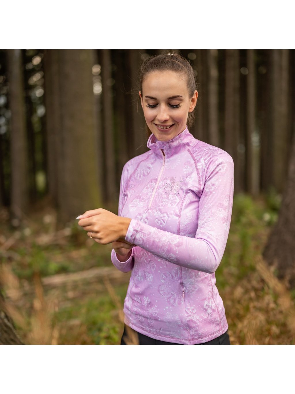 Svetloružový dámsky funkčný rolák s potlačou vločiek