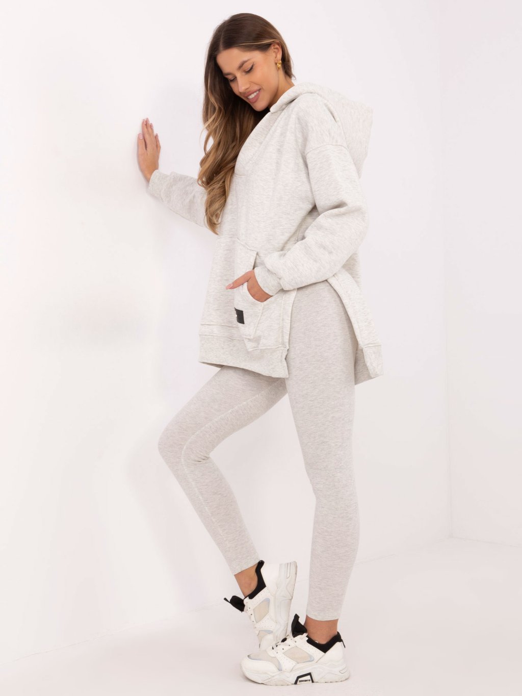 Svetlosivá dámska trojdielna súprava s asymetrickou mikinou