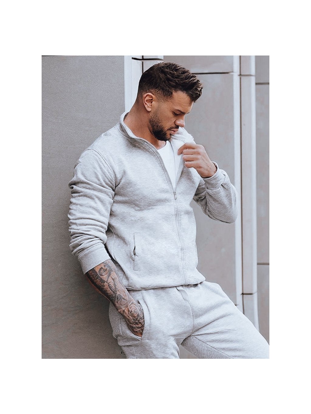 Svetlosivá mikina na zips bez kapucne