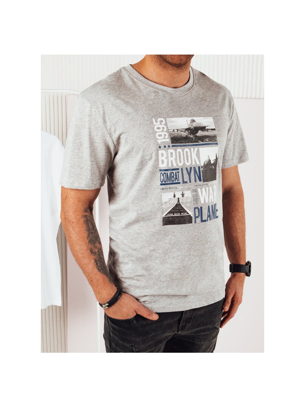 Svetlosivé pánske tričko s potlačou BROOKLYN