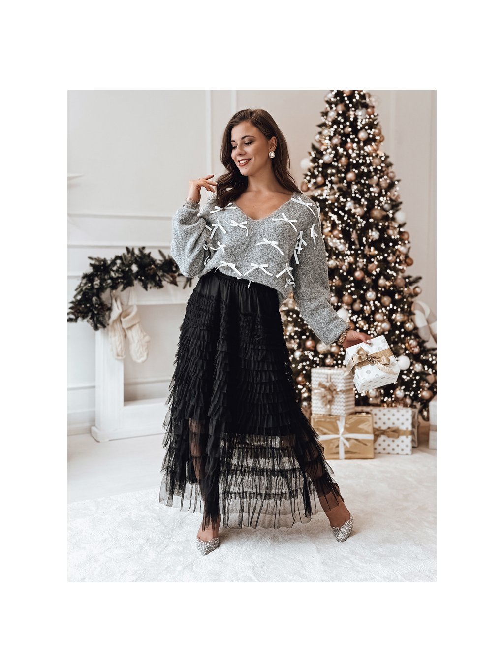 Svetlosivý dámsky sveter s mašľami RIBBLOOM