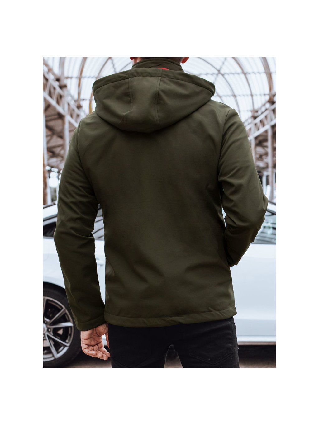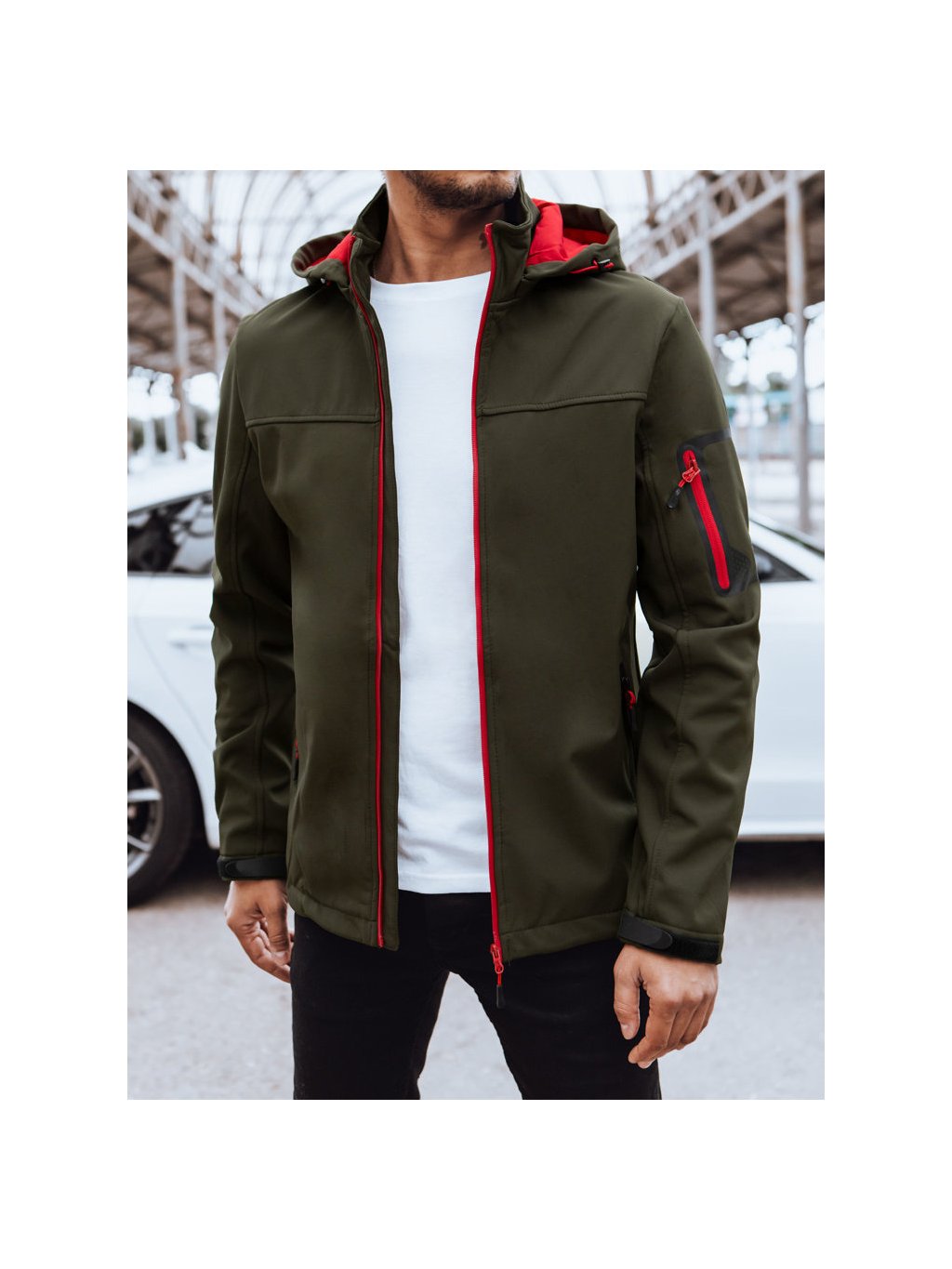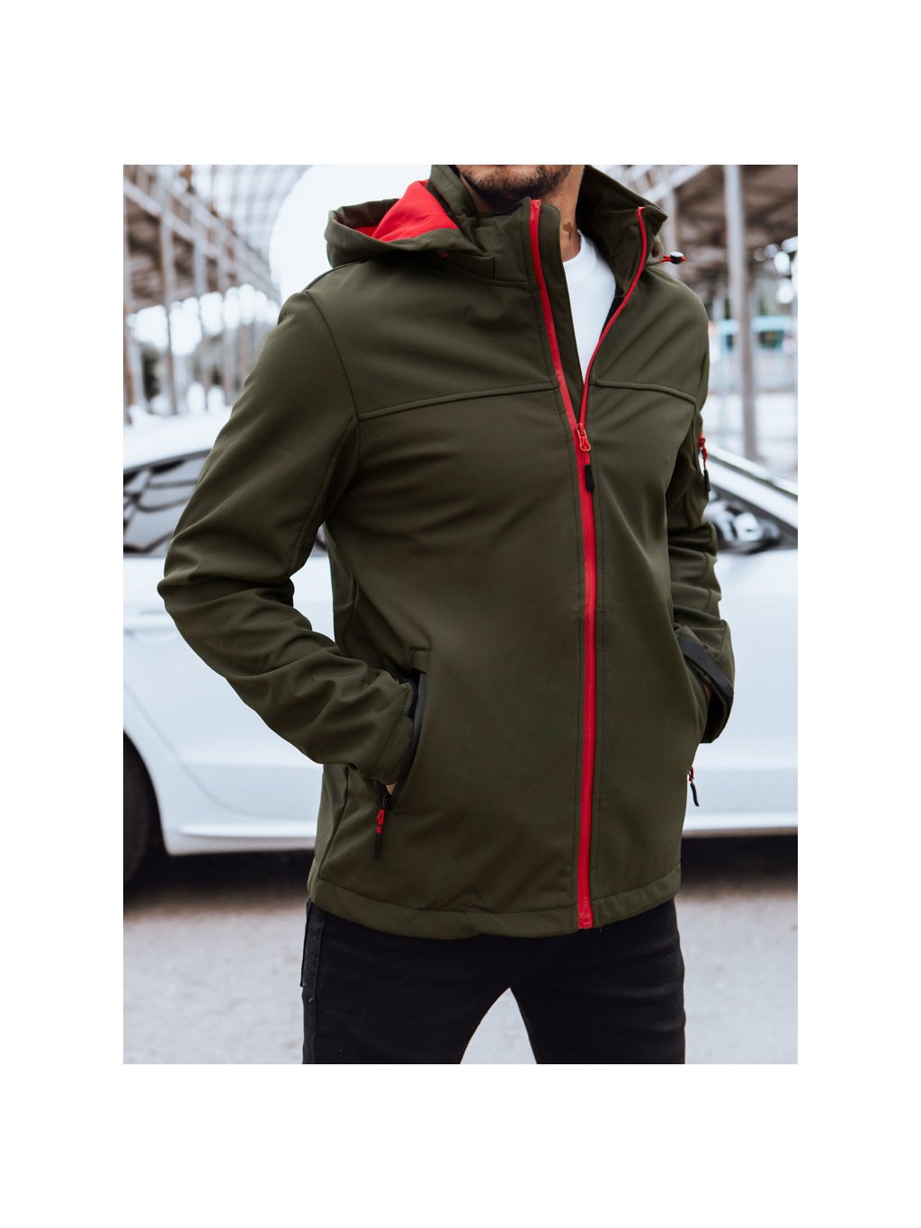 Tmavá khaki softshellová bunda s kapucňou
